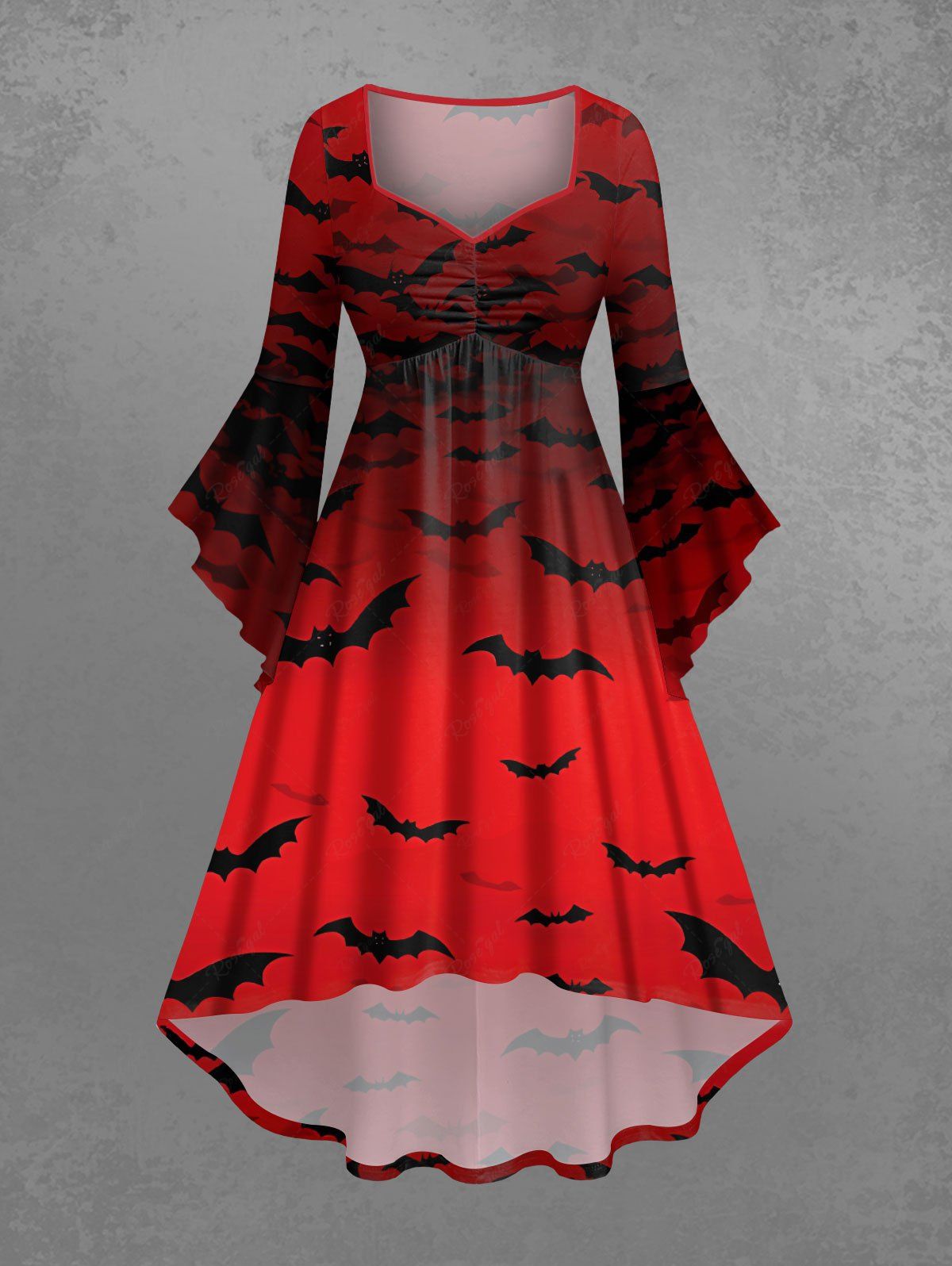 Gothic Plus Size Bat Dip Dye Ombre Print Halloween Costume Ruched High Low Asymmetric Dress