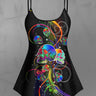 Gothic Colorful Ombre Skull Bubble Curve Print Tankini Top(Adjustable Shoulder Strap)