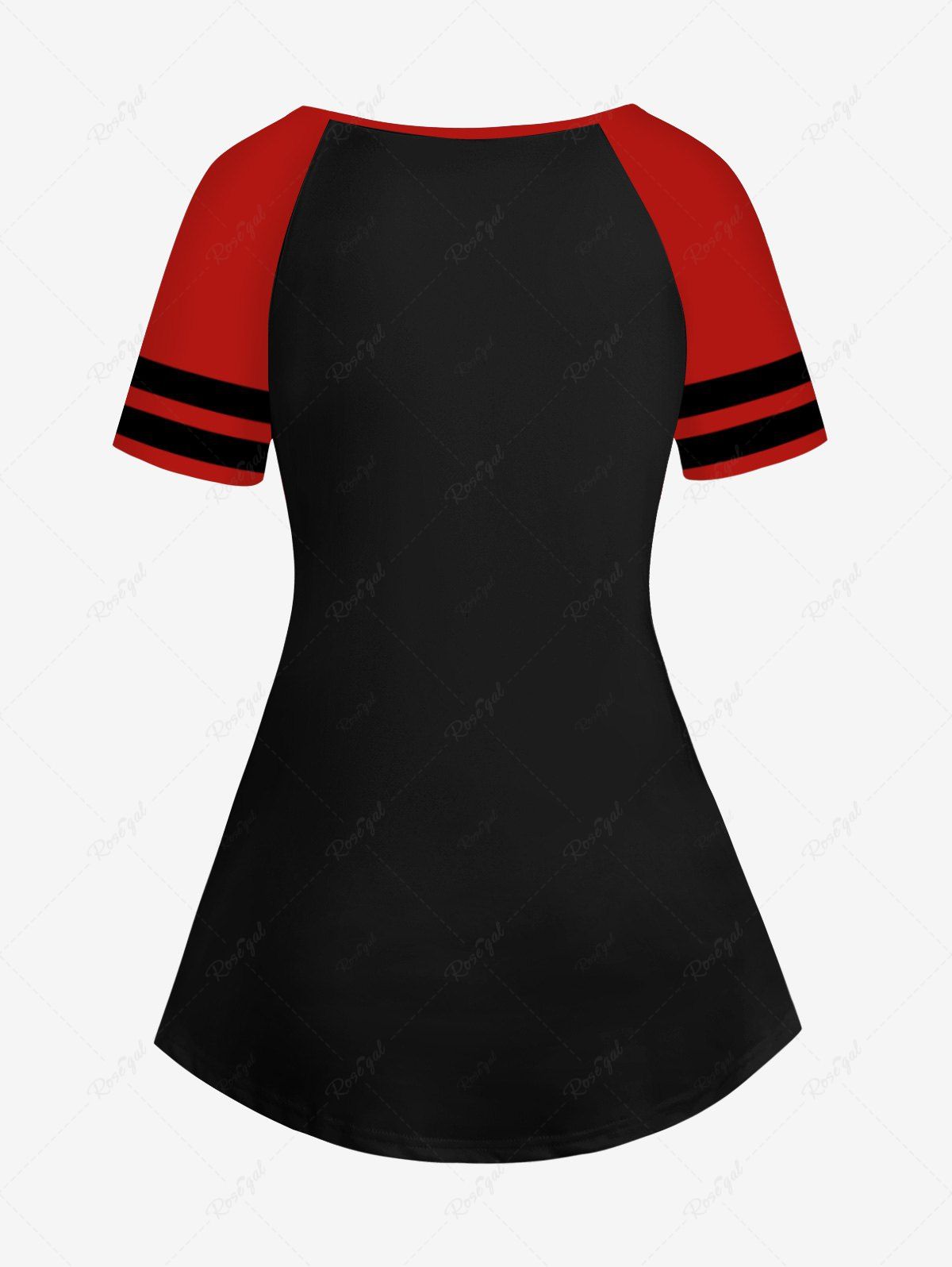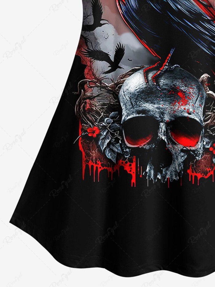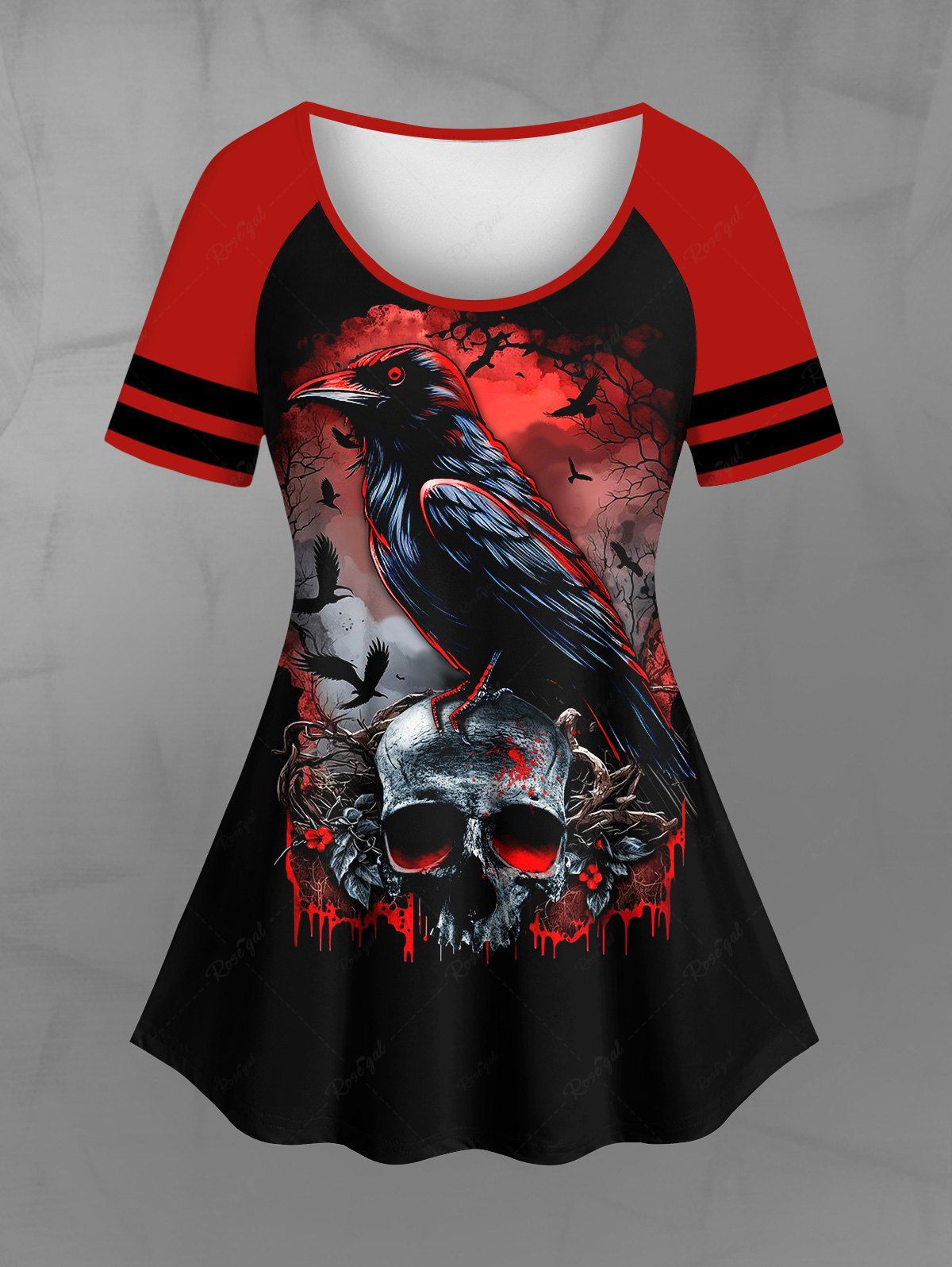 Gothic Plus Size Eagle Tree Fire Skull Flower Blood Print Raglan Sleeve T-shirt