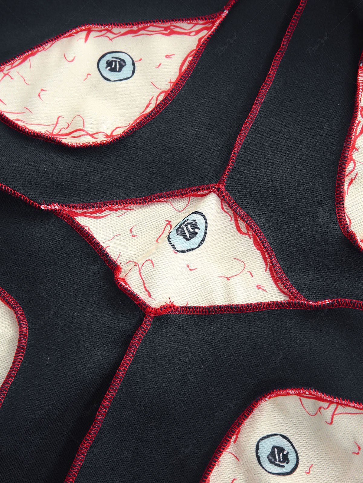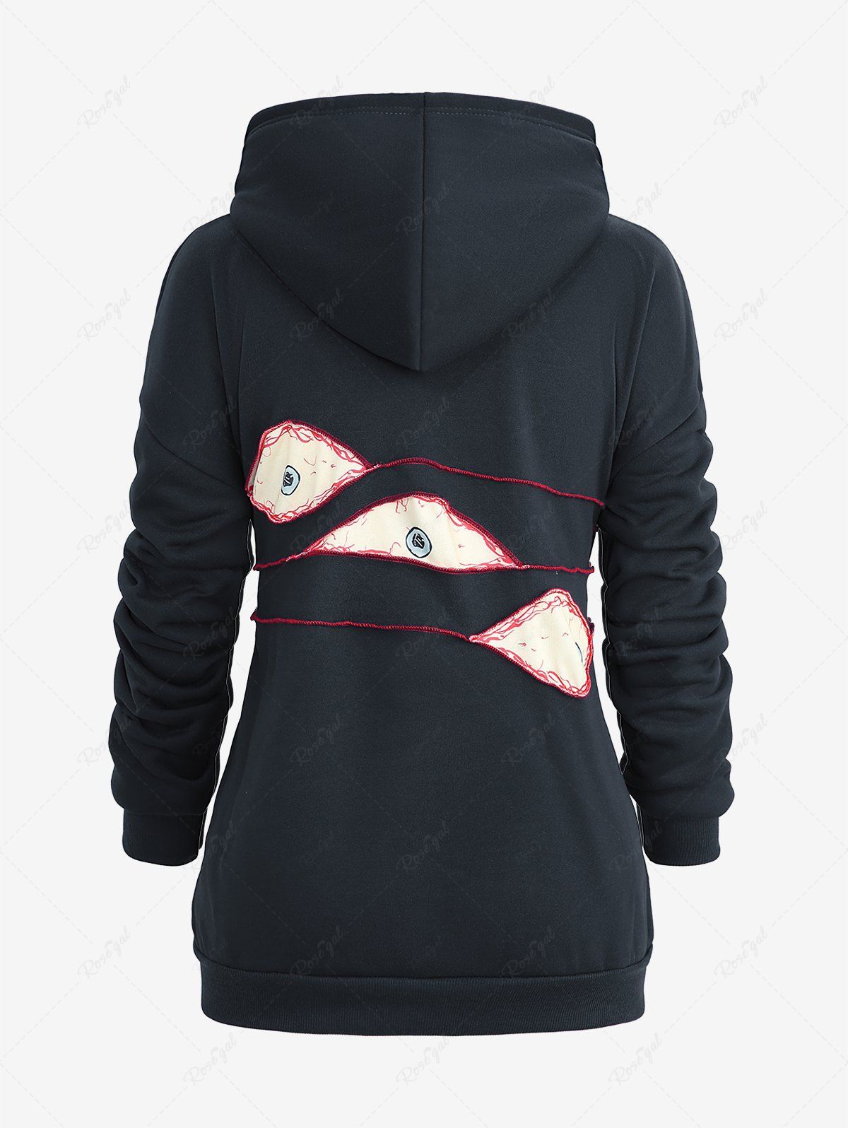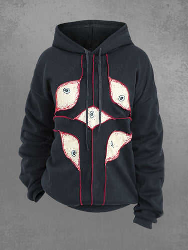 Gothic Eye Graphic Topstitching Pullover Long Sleeve Fleece Lining Hoodie