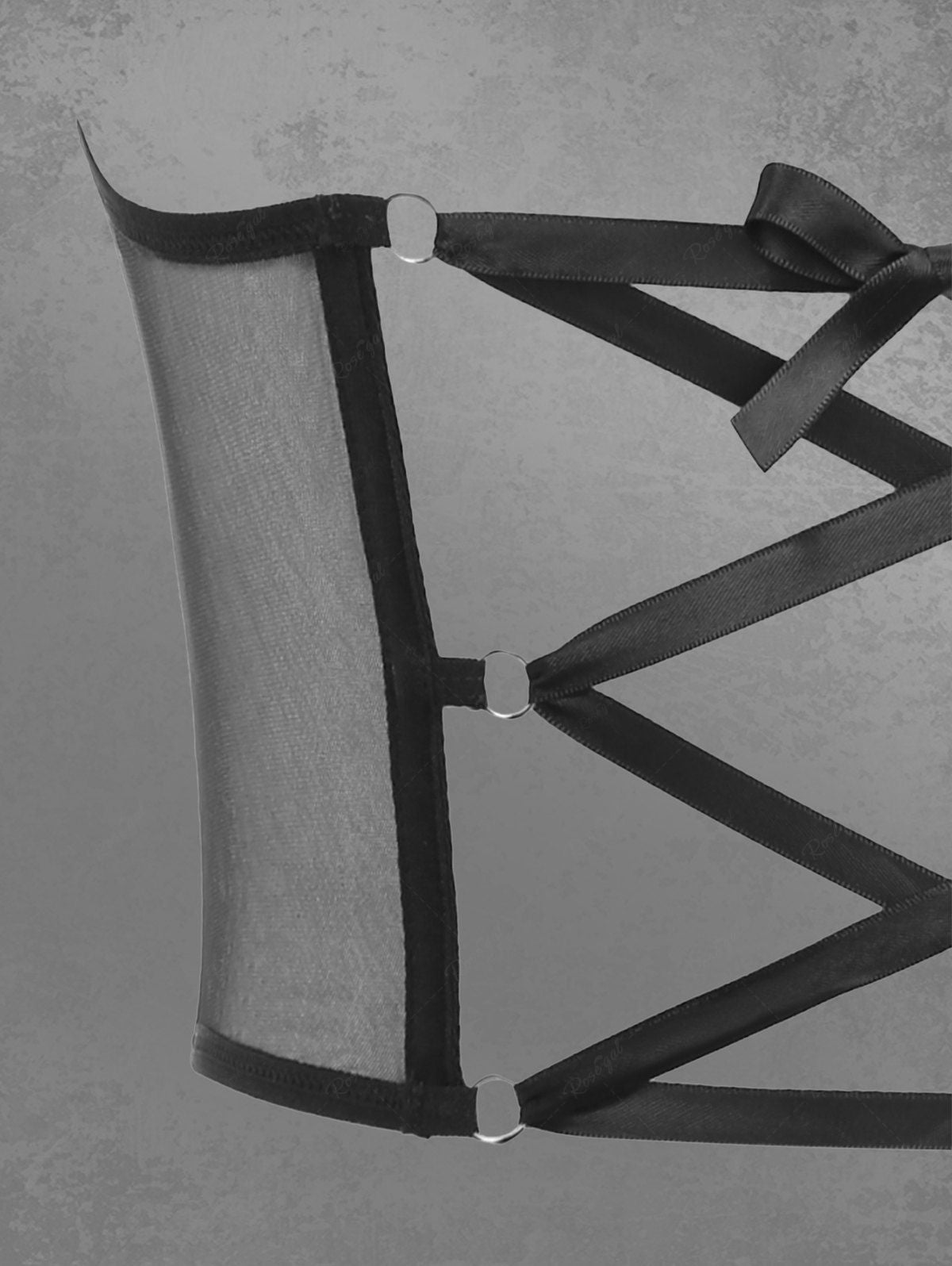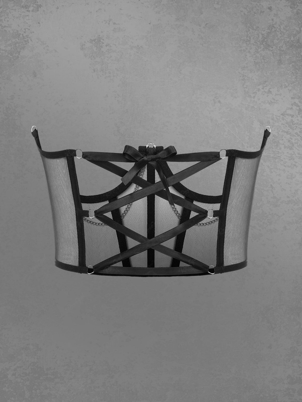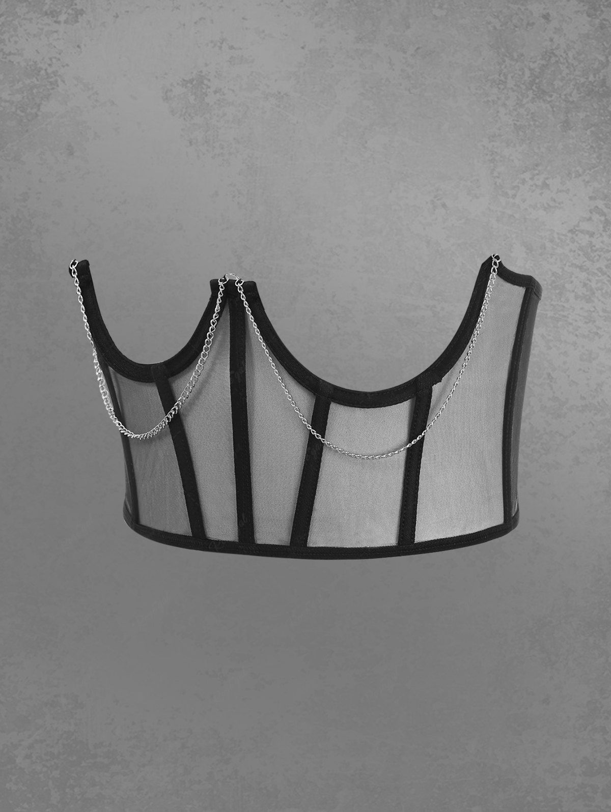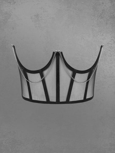 Gothic Fashion Chain Sheer Panel Lace Up Tied Underbust Corset Belt