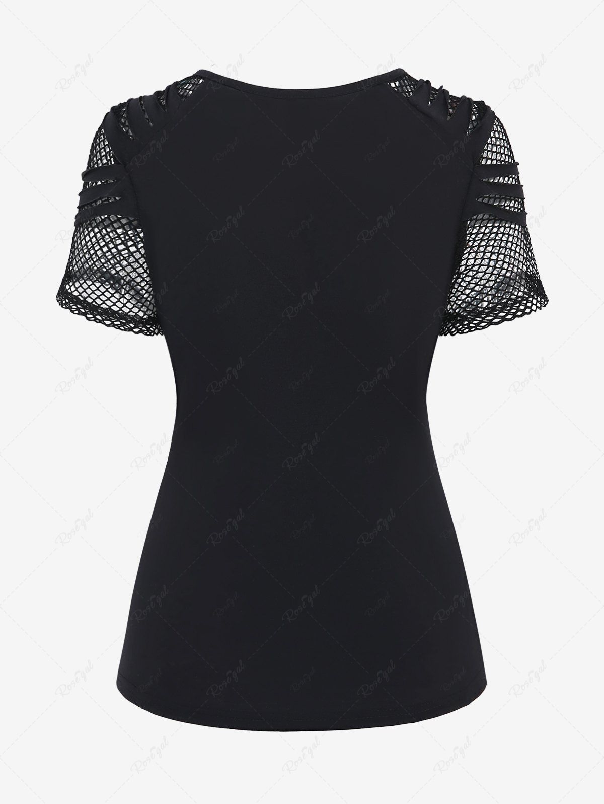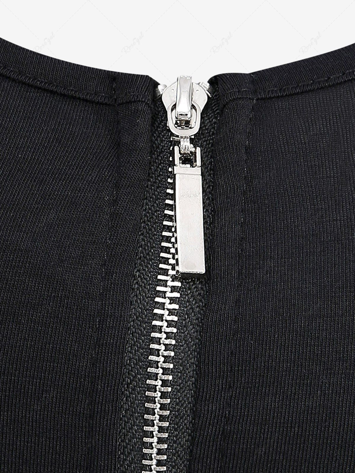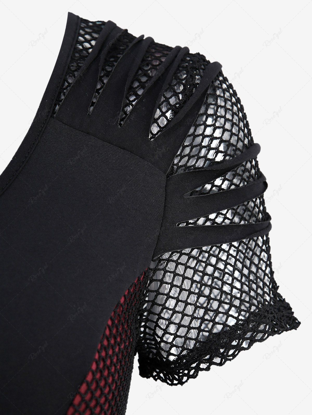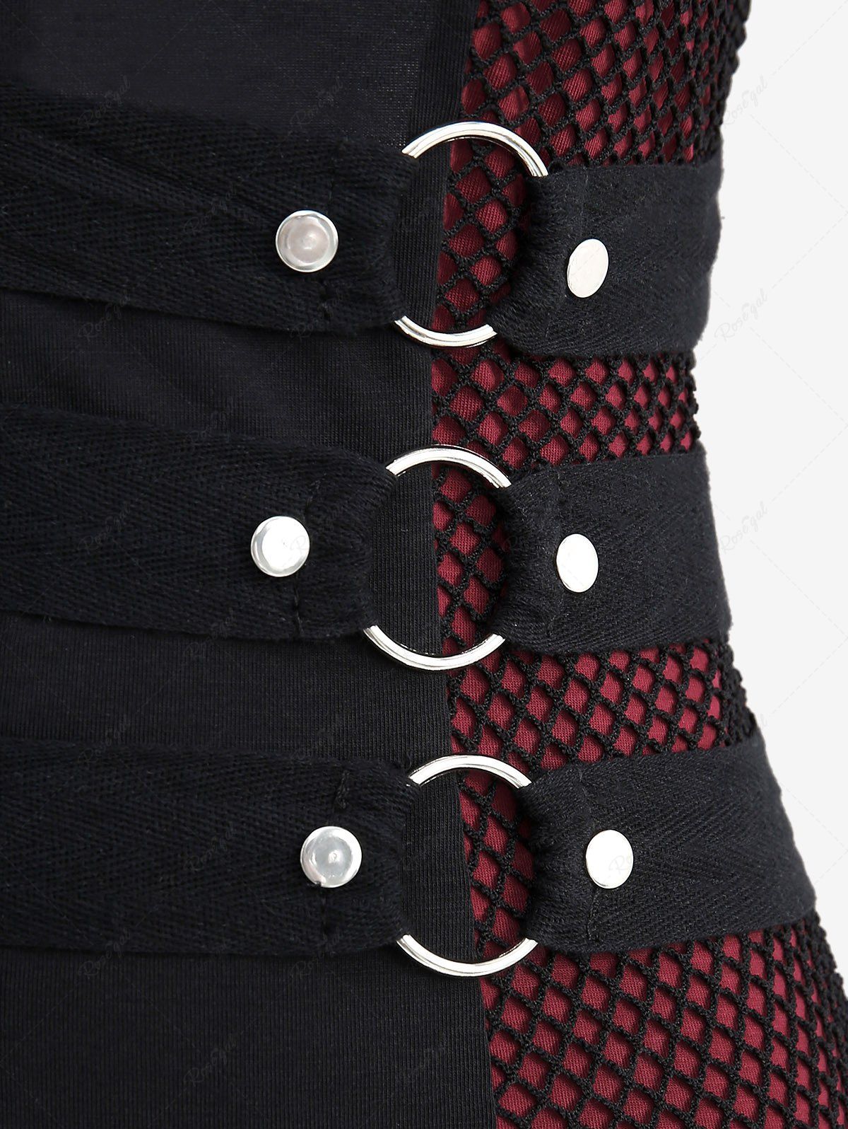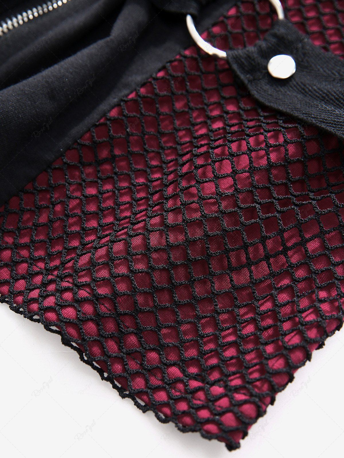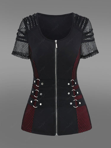 Gothic Fishnet Panel O-Ring Full Zipper Ripped Sleeves Patchwork Top