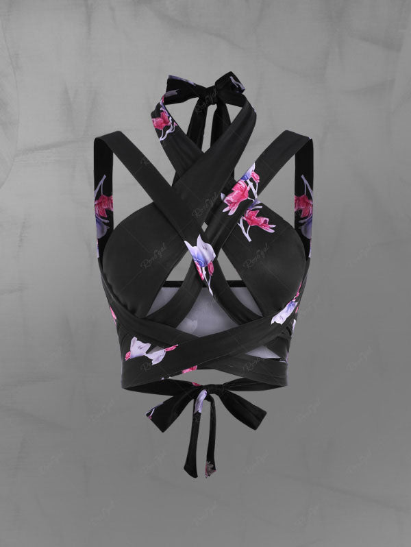 A unique top with an alluring feel, this Archie top is accented with a dense, pretty floral pattern and finished with straps that wrap around the waist and back to emphasizes its sleek silhouette.
