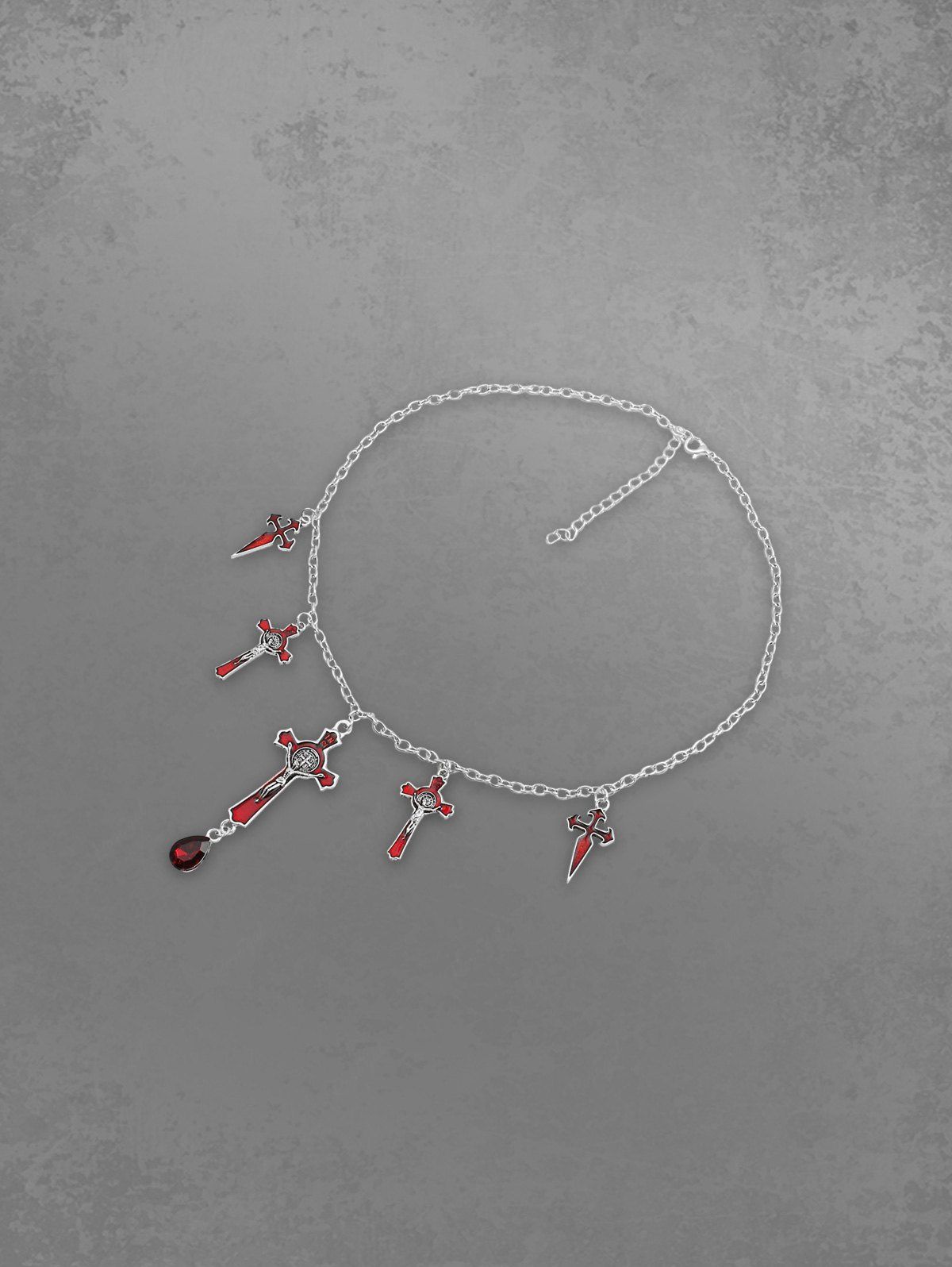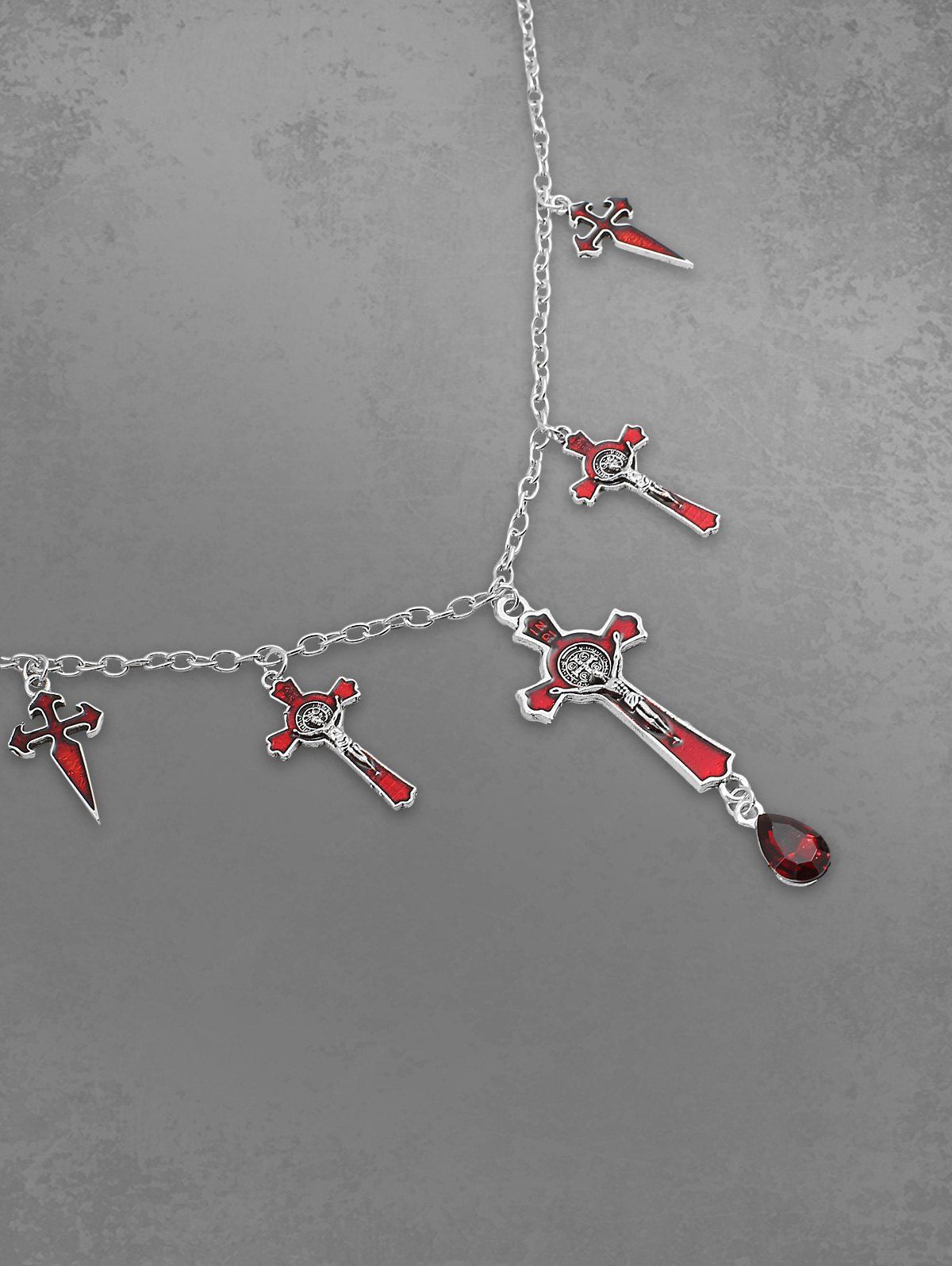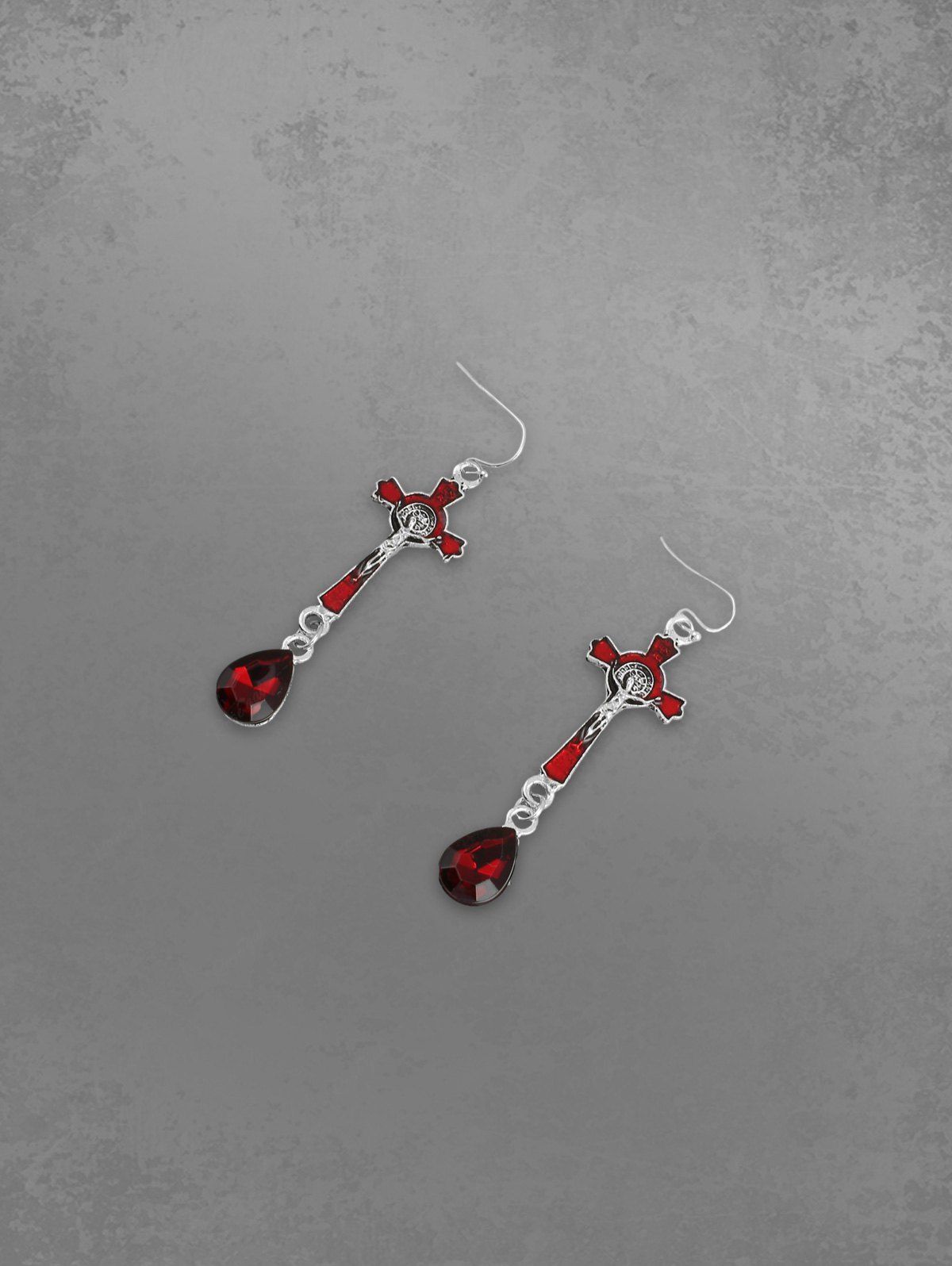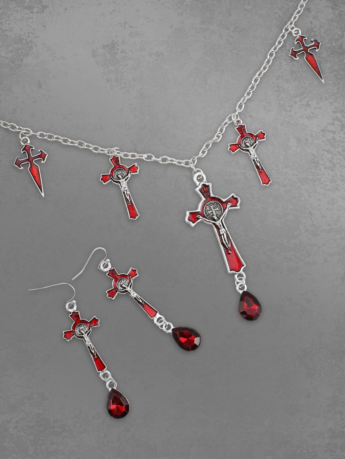 Gothic Halloween Water Droplet Cross Bat Necklace and Earrings Set
