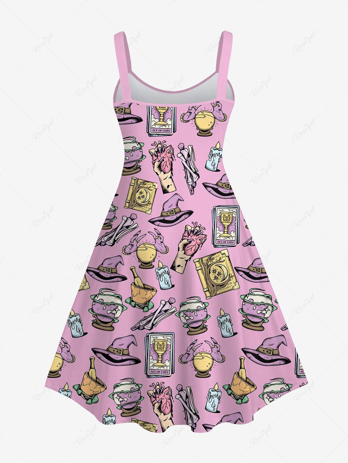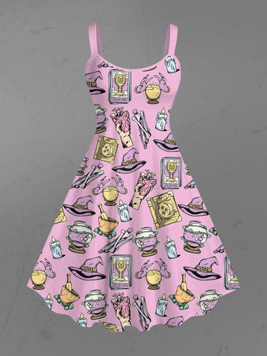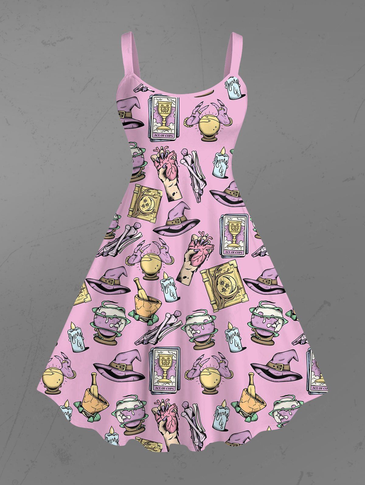 Gothic Plus Size Hand Heart Hat Crystal Ball Tarot Candle Bone Moon Star Print A Line Backless Tank Dress