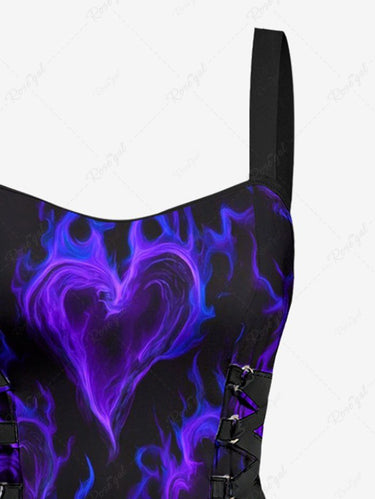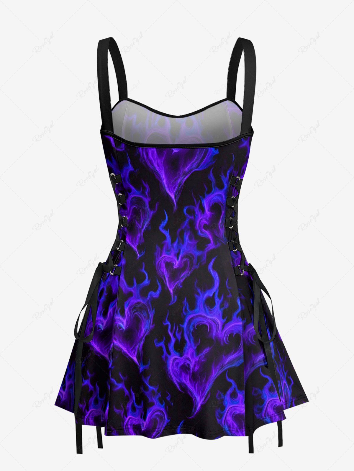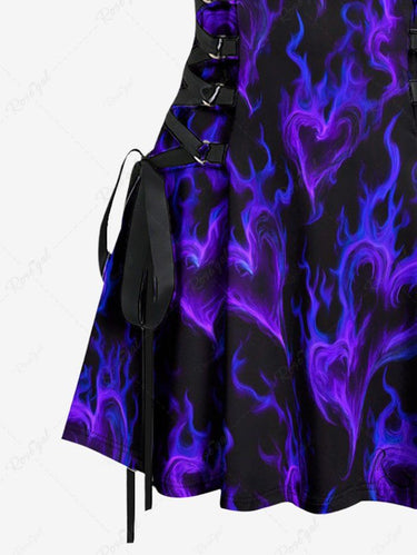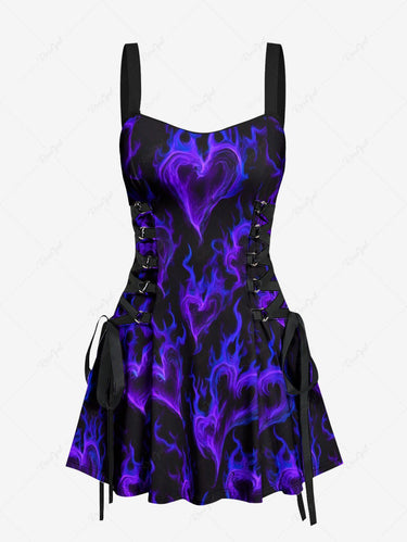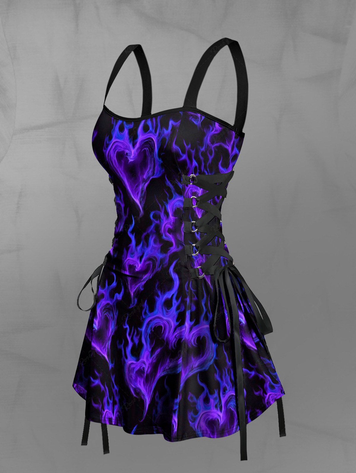 Gothic Heart Fire Flame Print Valentines Lace Up A Line Dress