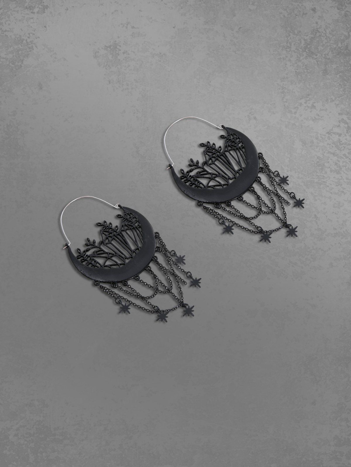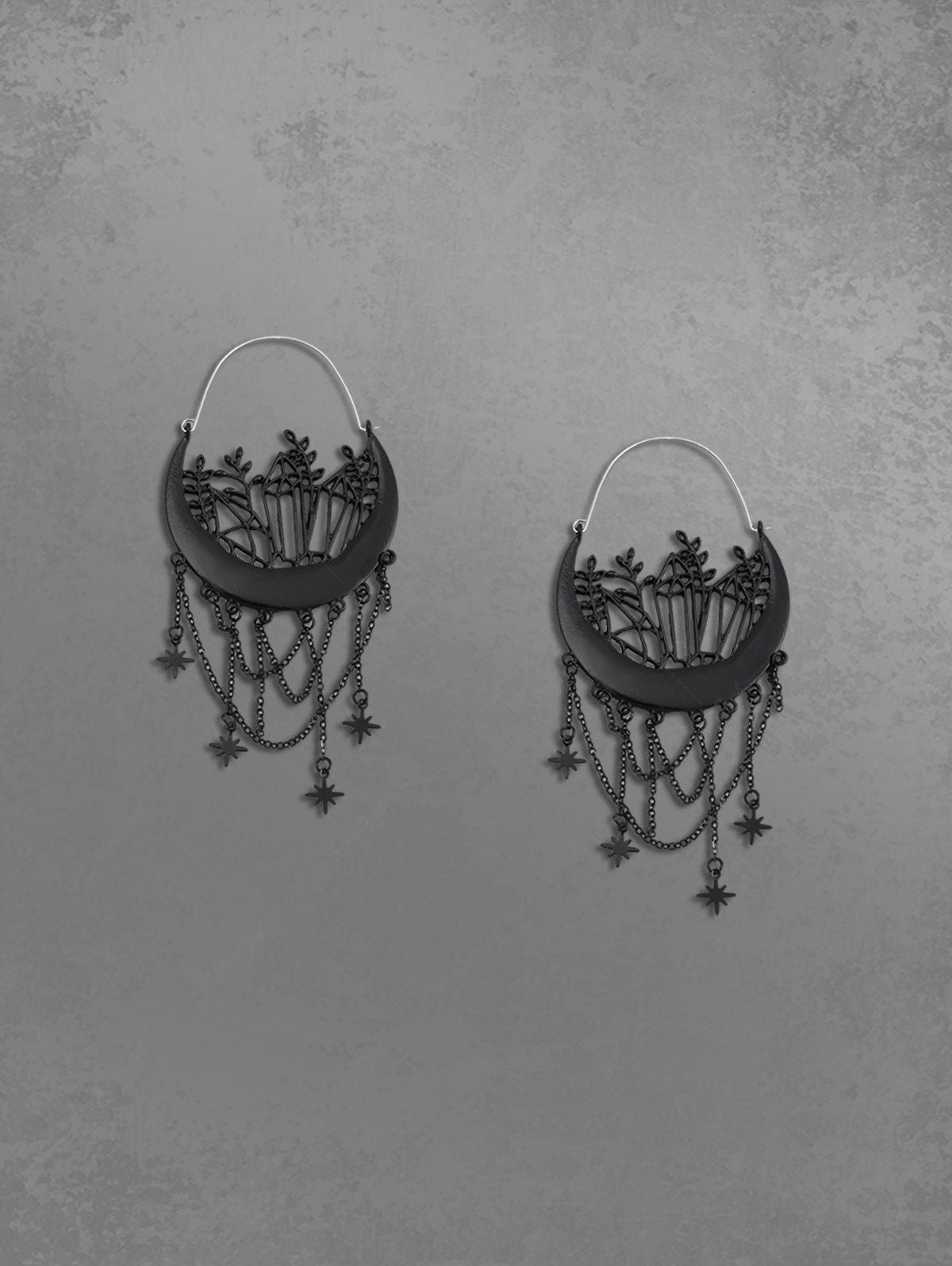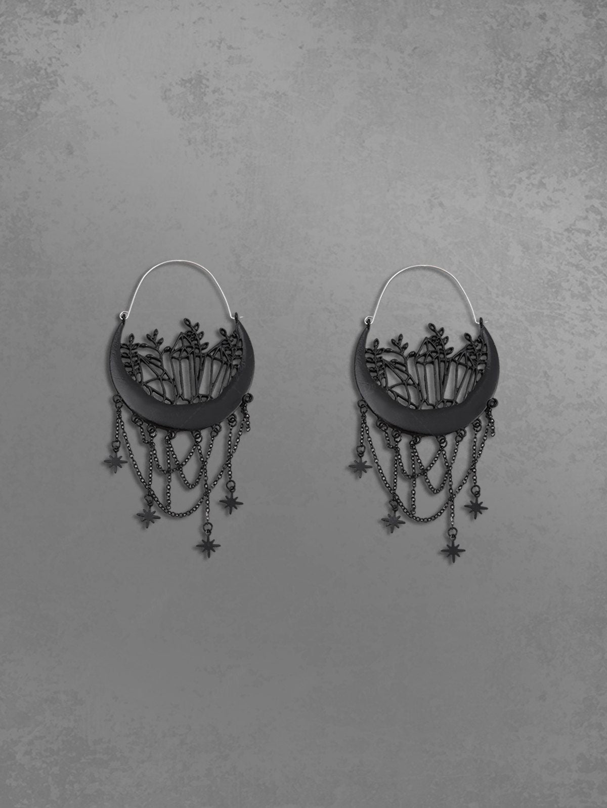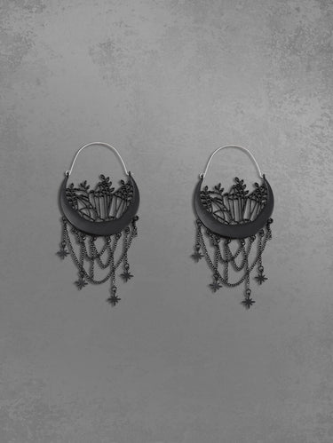 Gothic Hollow Out Flower Basket Star Chain Tassel Earrings