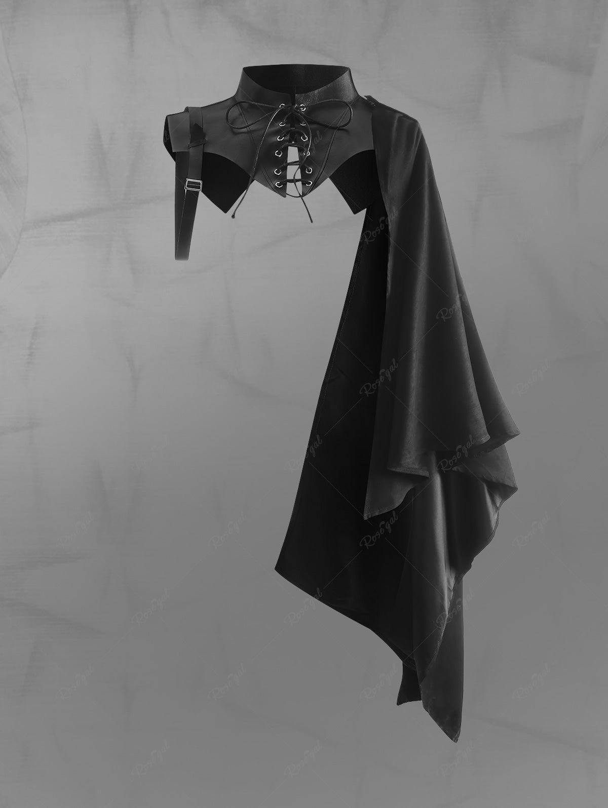 Gothic Plus Size Lace Up PU Leather Asymmetrical Cape Cloak Bolero Collar Top