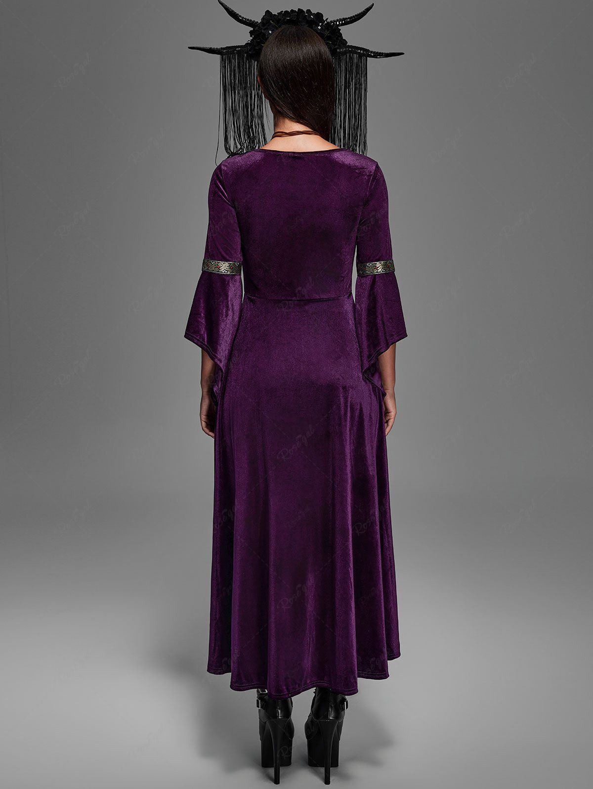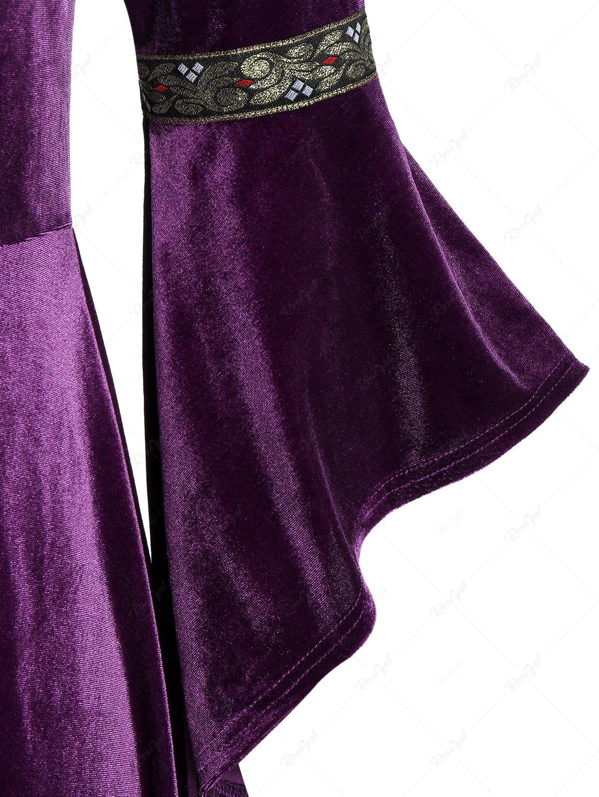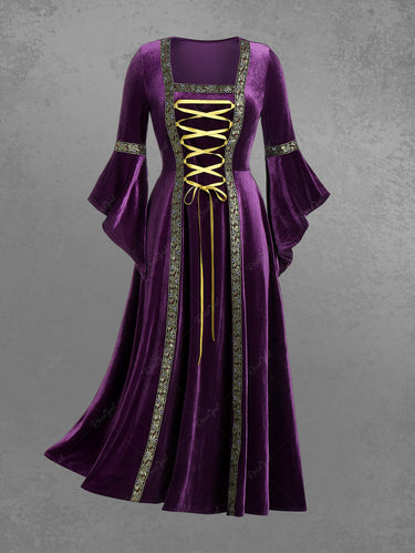 💗Vixtina Loves💗 Plus Size Gothic Lace Up Vintage Bell Sleeves Velvet Maxi Renaissance Medieval Halloween Dress