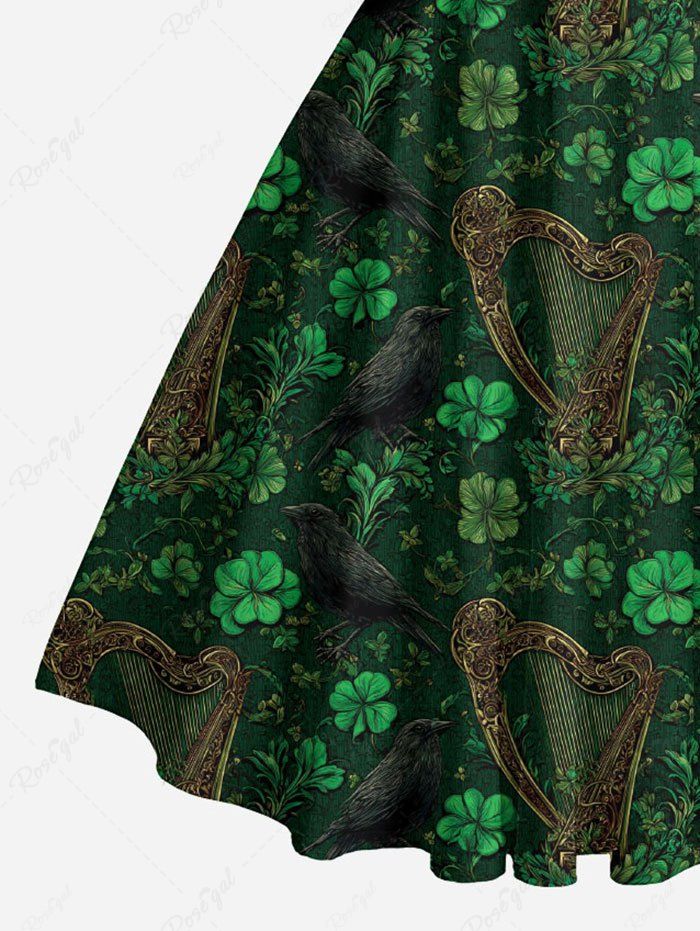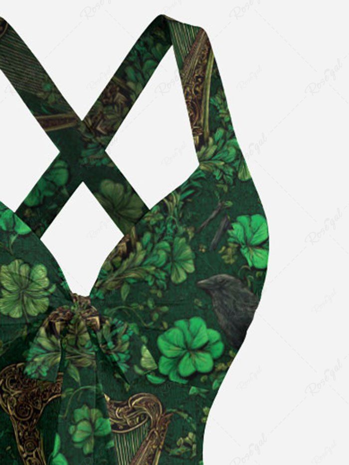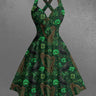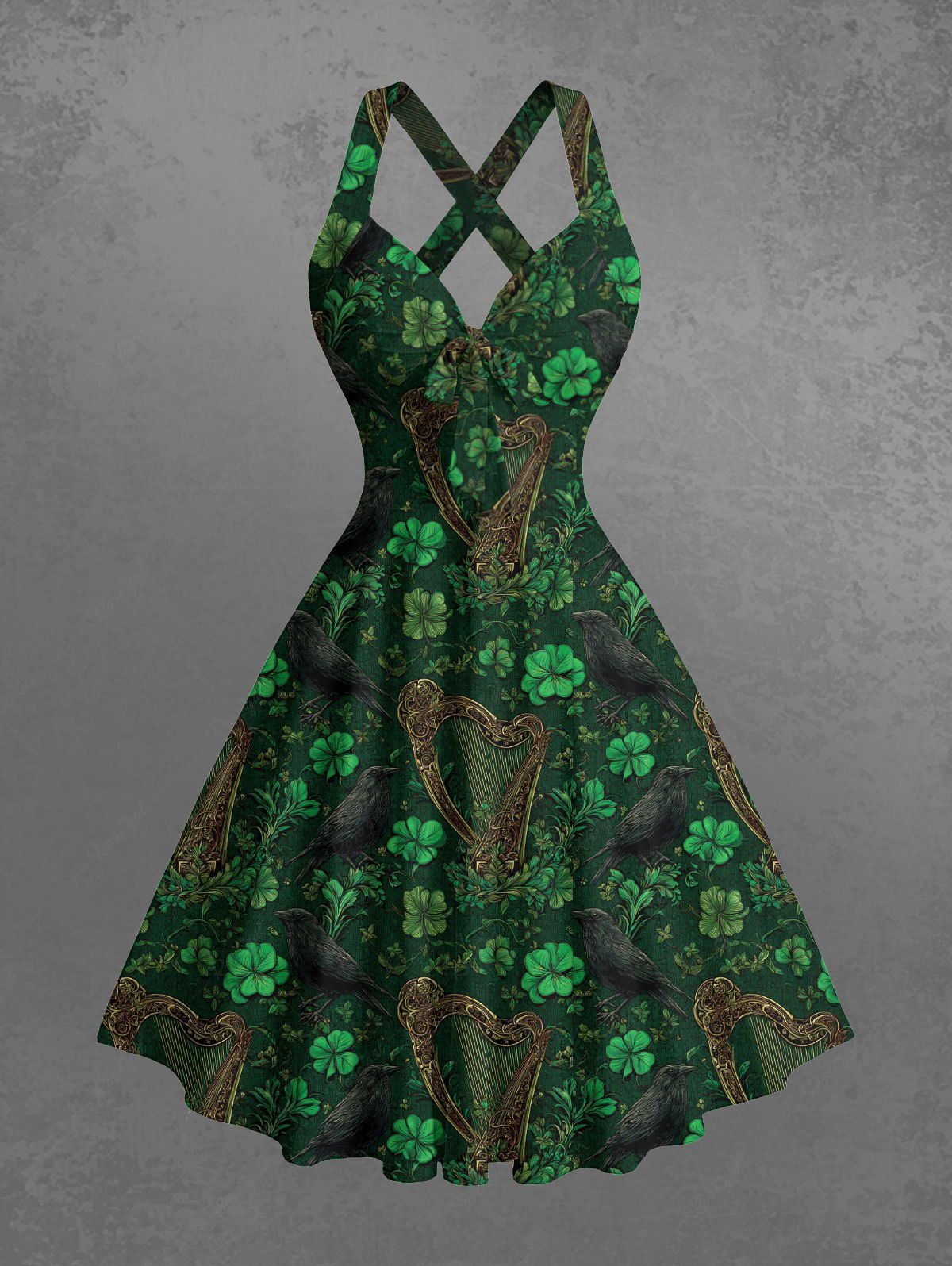 Gothic Leaf Crow Harp Print Crisscross Strappy Halter A Line Dress