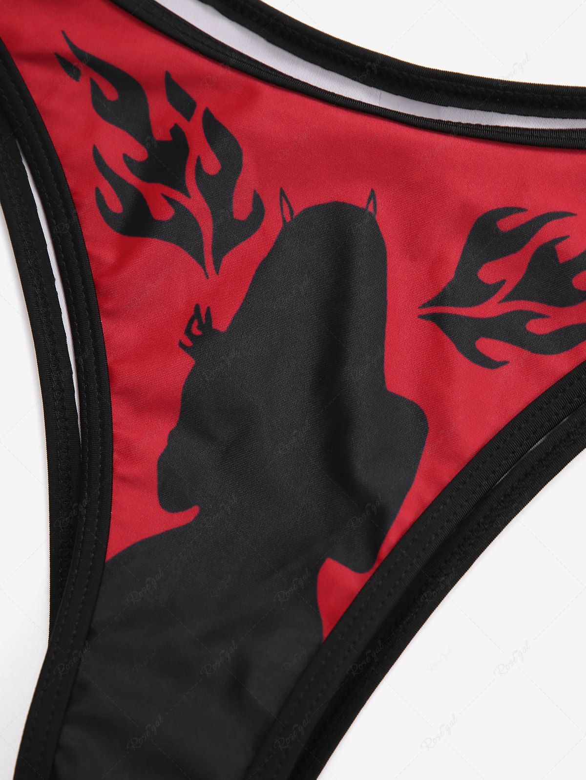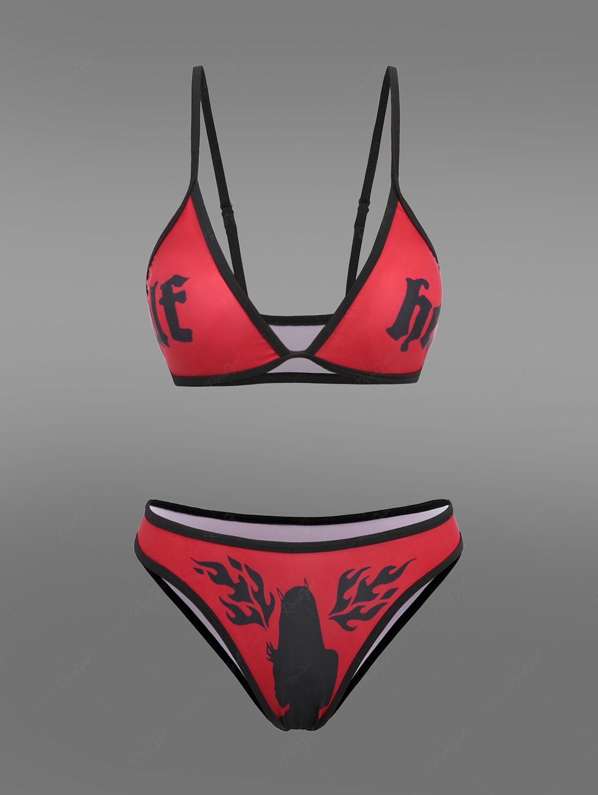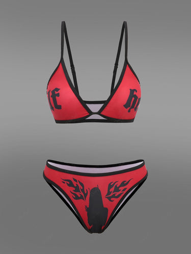 Gothic Plus Size Letters Bunny Girl Fire Flame Print Bikini Set (Adjustable Shoulder Strap)