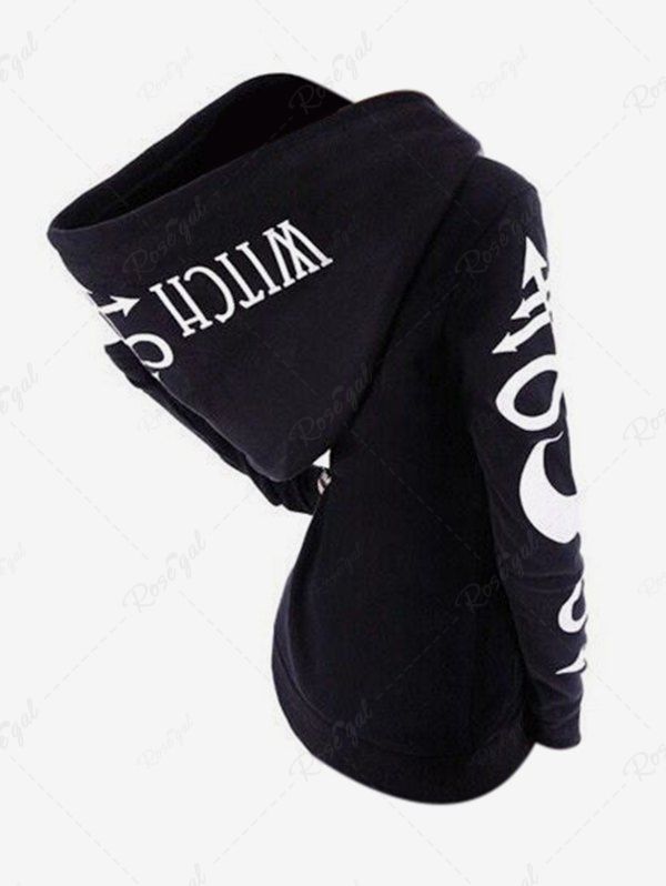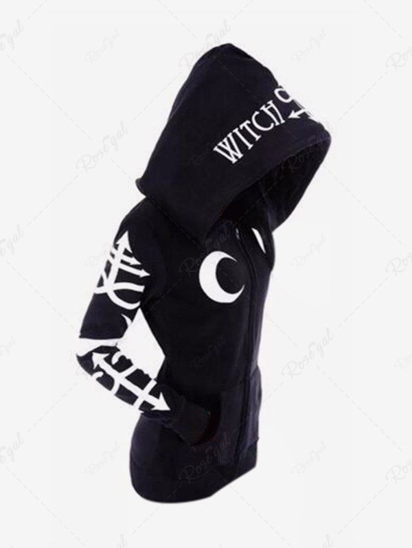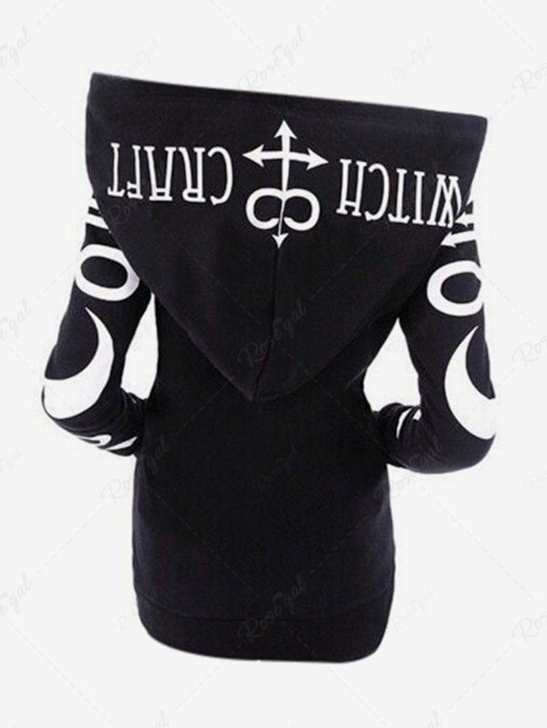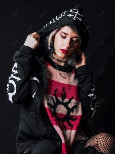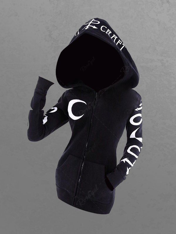 Gothic Moon Letters Print Full Zipper Pocket Long Sleeves Hoodie