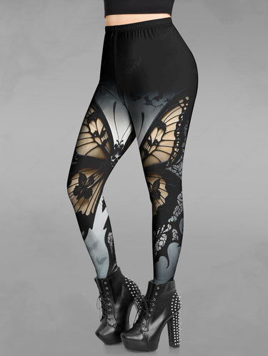 Gothic Plus Size Ombre Butterfly Galaxy Print Skinny Leggings