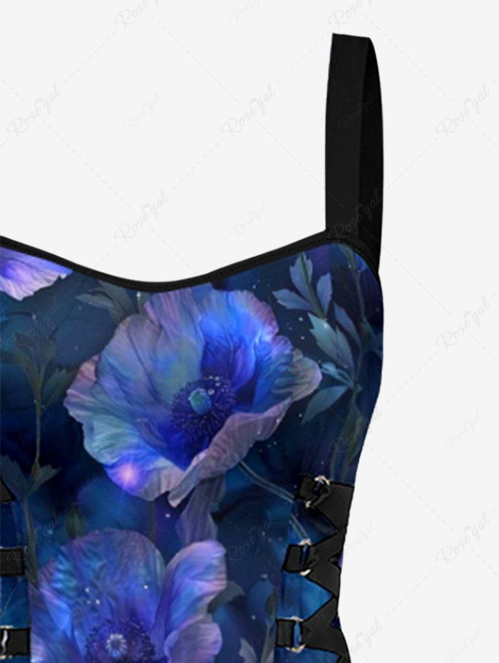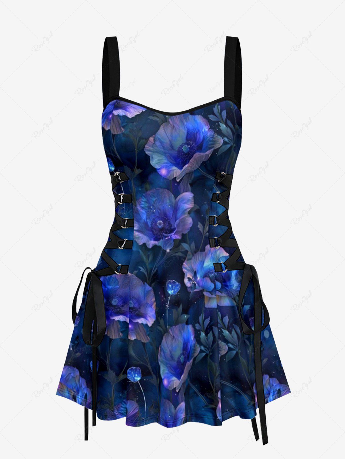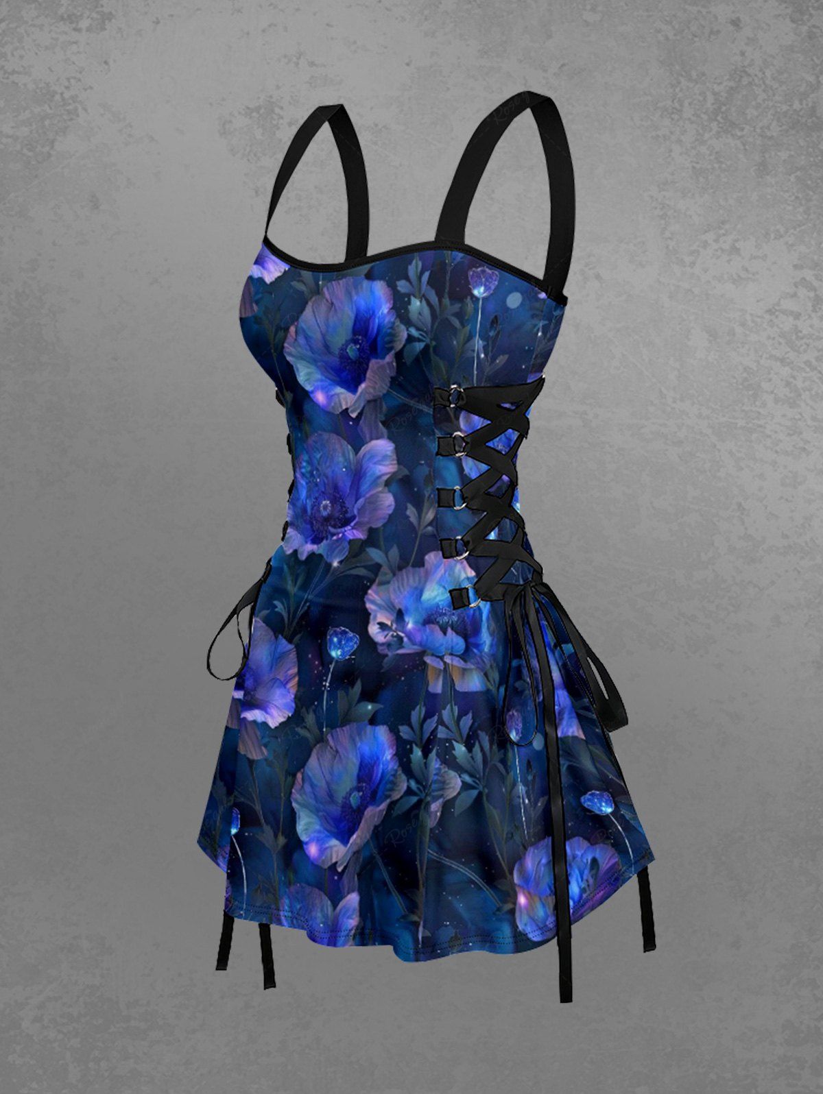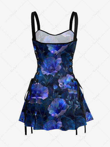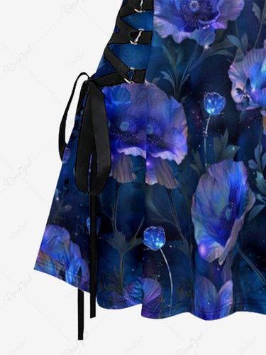 Gothic Ombre Flower Butterfly Print Lace Up A Line Dress
