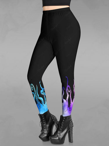 Gothic Plus Size Ombre Octopus Print Skinny Leggings