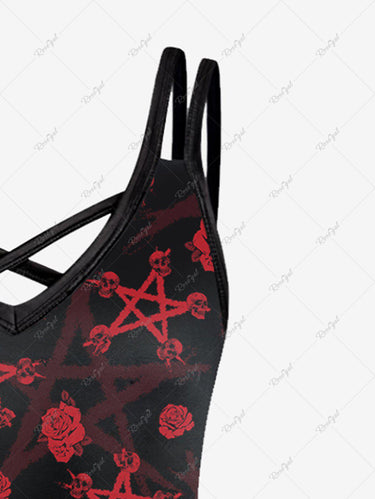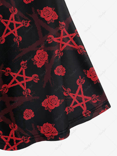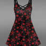 💗Stephanie Loves💗 Gothic Plus Size Pentagon Skulls Flower Print Crisscross Cami Dress