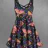 Gothic Plus Size Butterfly Floral Leaf Stars Print Crisscross A Line Cami Dress