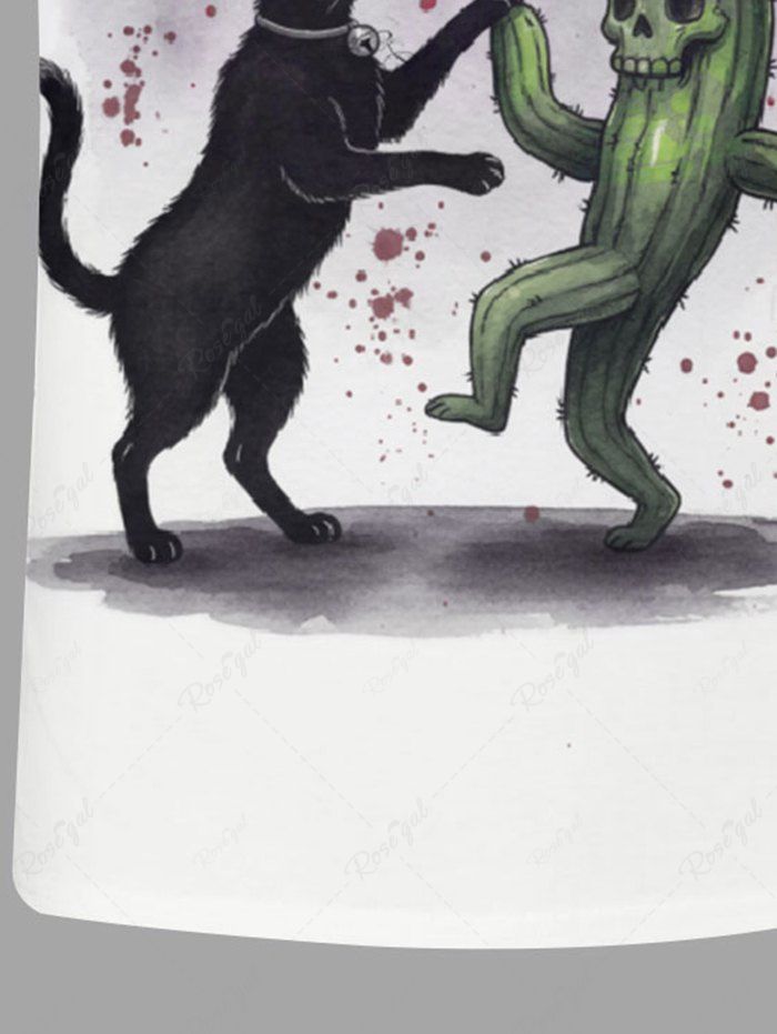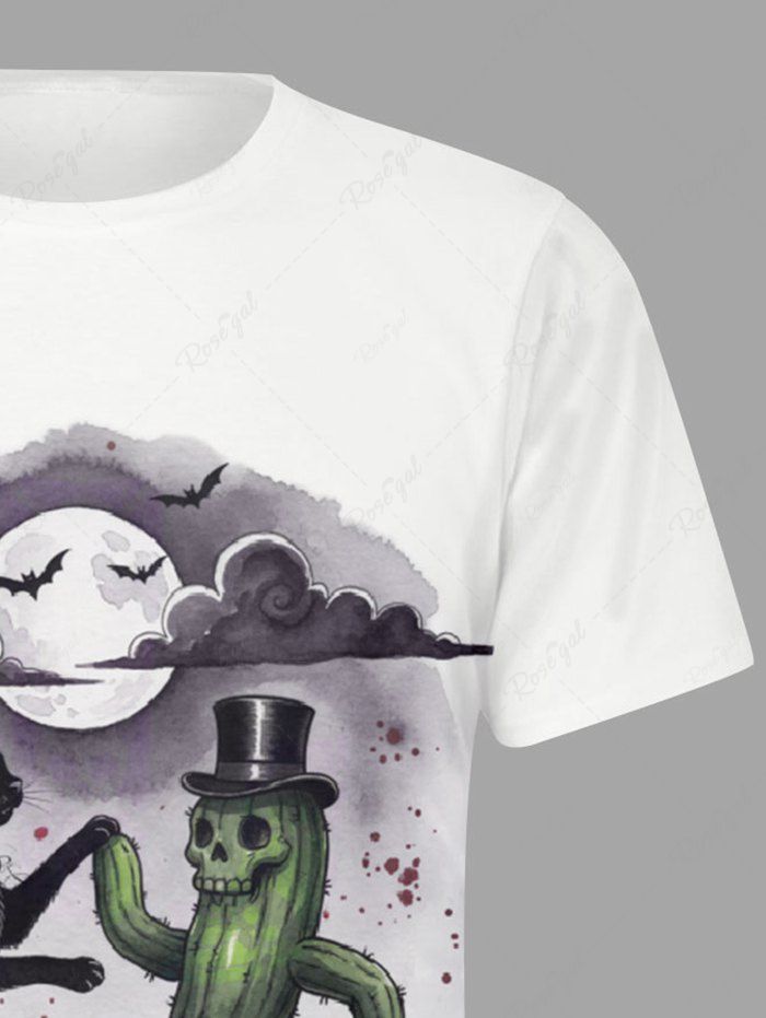 Gothic Plus Size Cat Skull Cactus Bat Moon Cloud Print T-shirt For Men