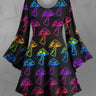 Gothic Plus Size Colorful Ombre Mushroom Print Flare Sleeves A Line Dress