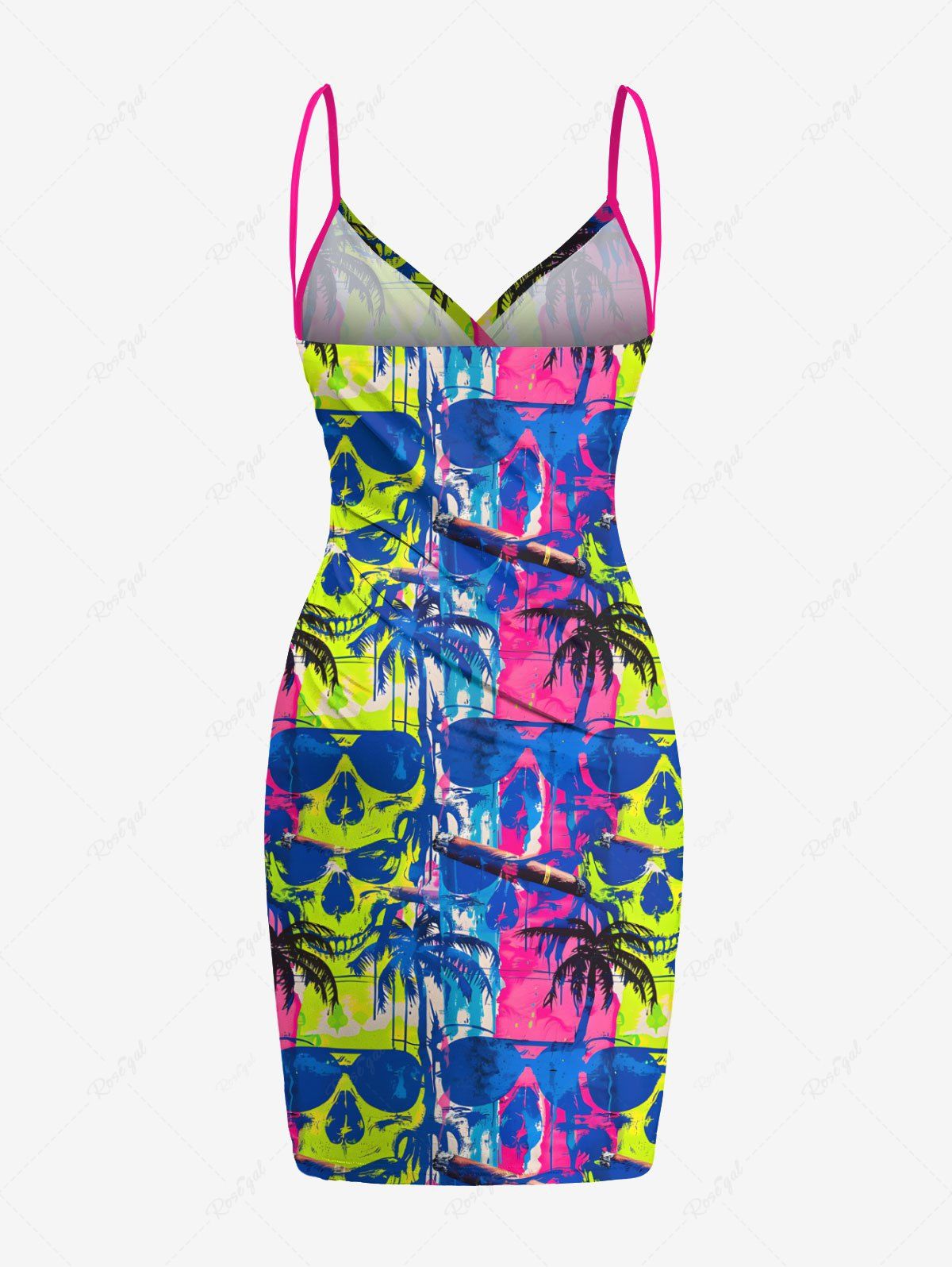 Gothic Plus Size Colorful Skull Coconut Tree Print Hawaii Convertible Beach Cover Up
