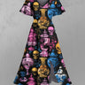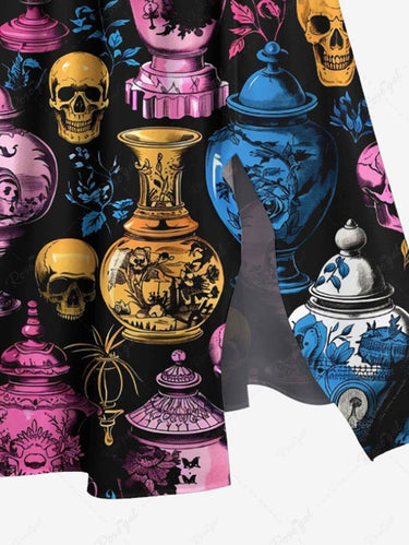 Gothic Plus Size Colorful Skull Vase Print Split Pocket A Line Midi Dress