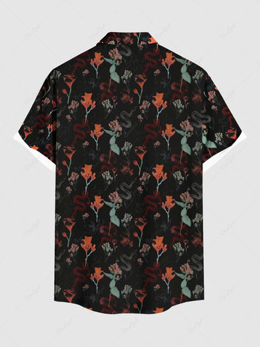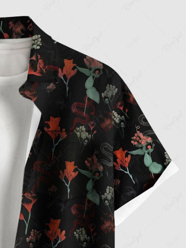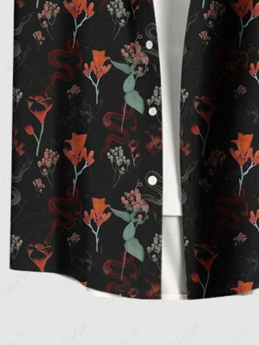 Gothic Plus Size Floral Snake Print Button Pocket Shirt For Men