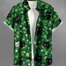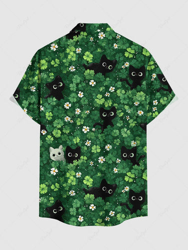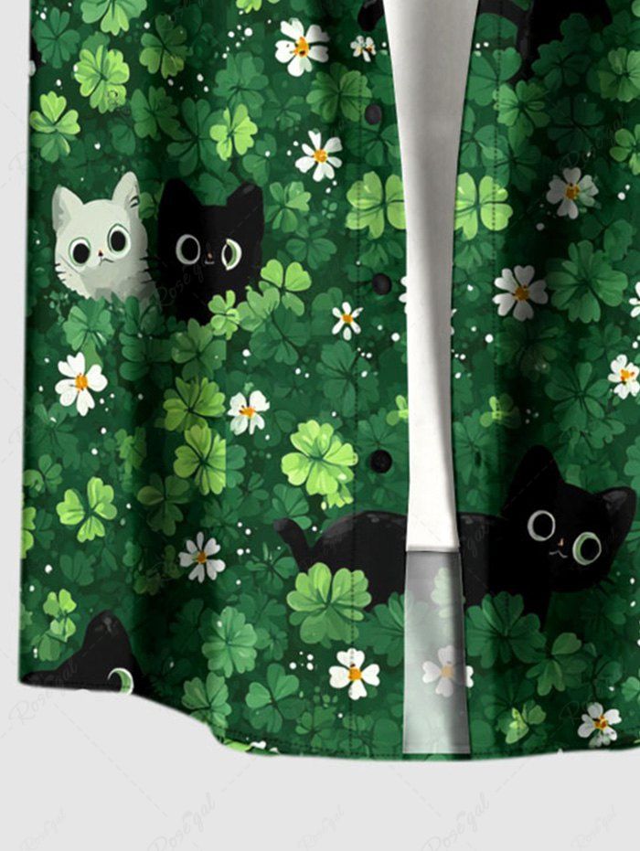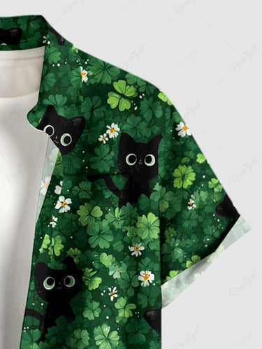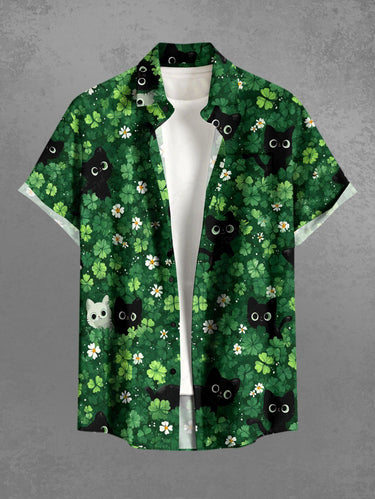 Gothic Plus Size Flower Leaf Cat Print St. Patrick's Day Button Pocket Shirt For Men