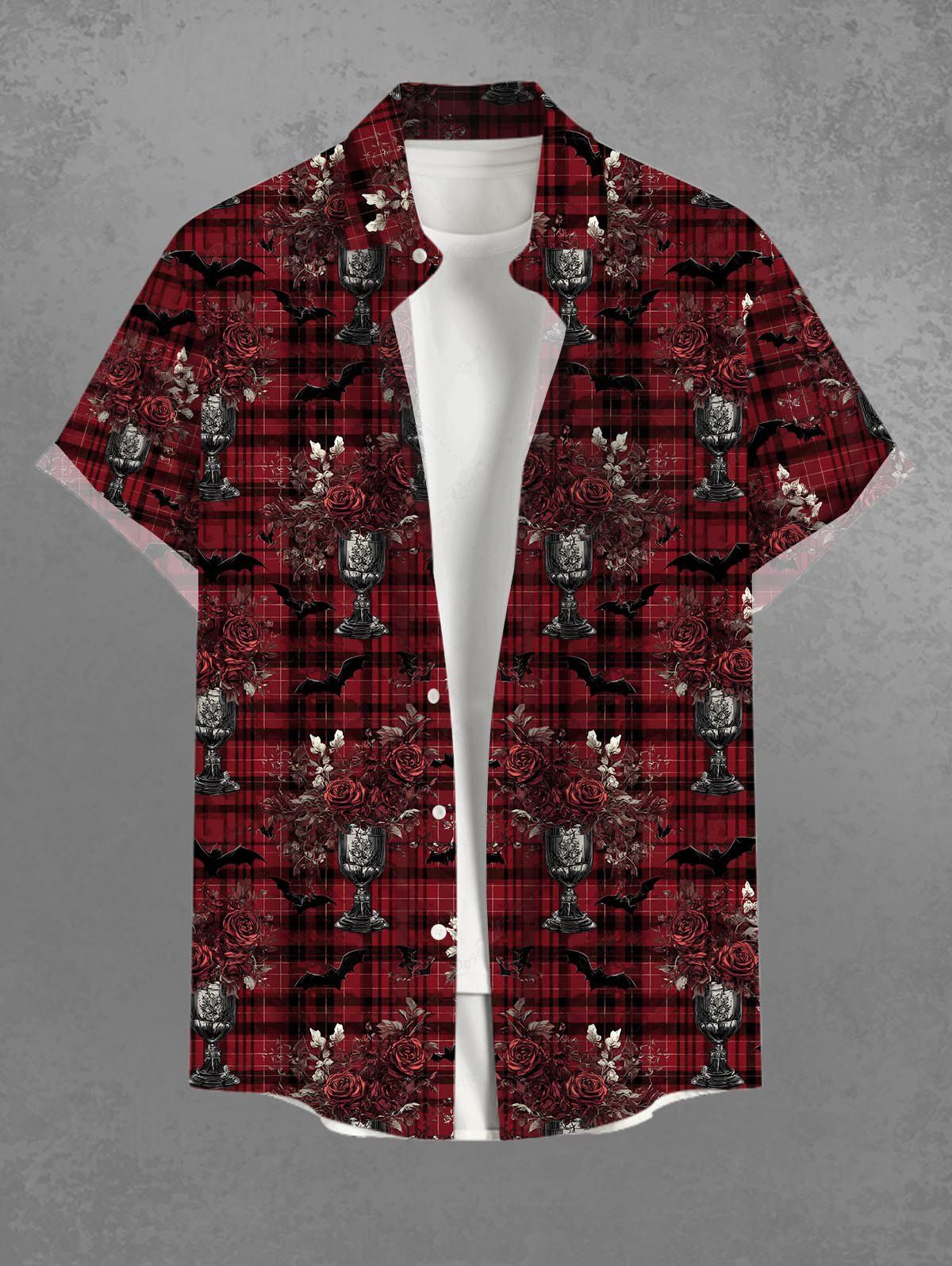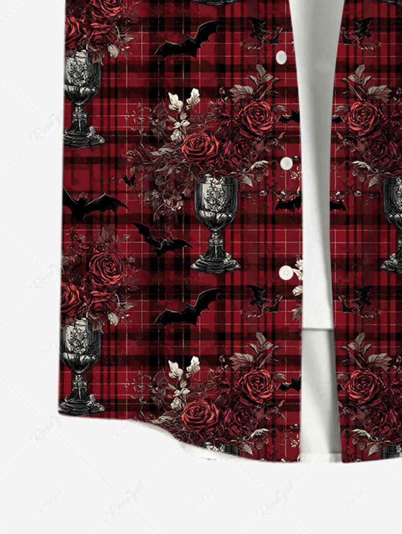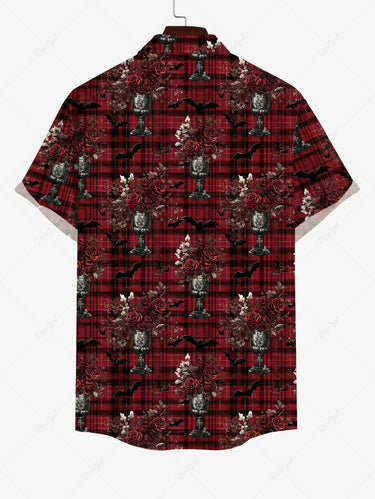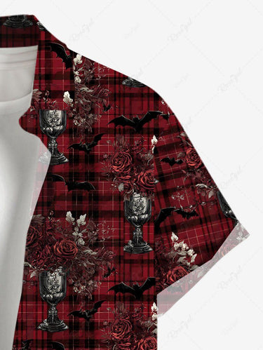 Gothic Plus Size Flower Plaid Print Button Pocket Shirt For Men