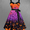 Gothic Plus Size Halloween Bat Pumpkin Lantern Ombre Colorblock Print Buttons Turn Down Collar Dress With Belt