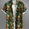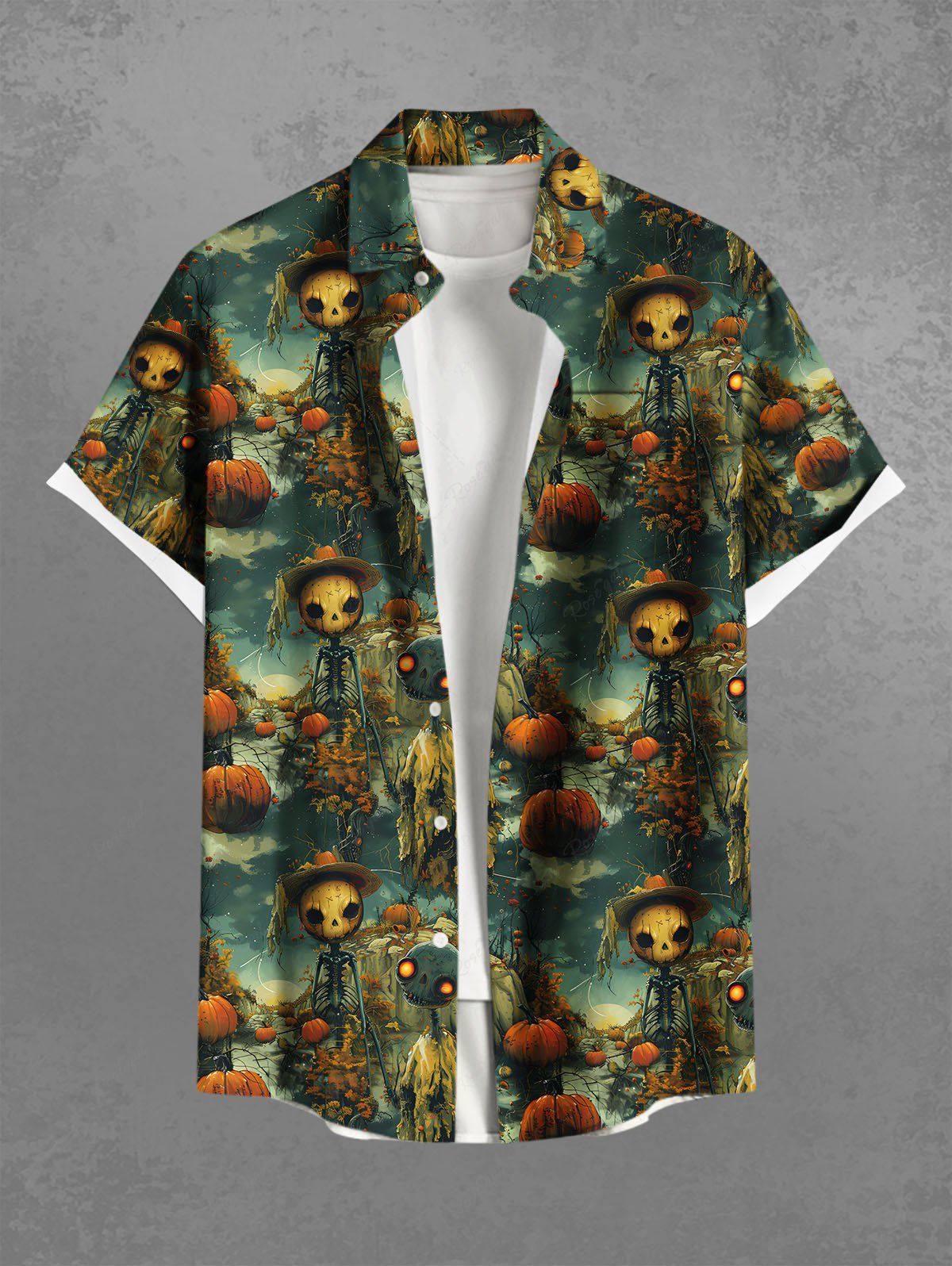 Gothic Plus Size Halloween Skull Skeleton Alien Pumpkin Print Buttons Pocket Shirt For Men