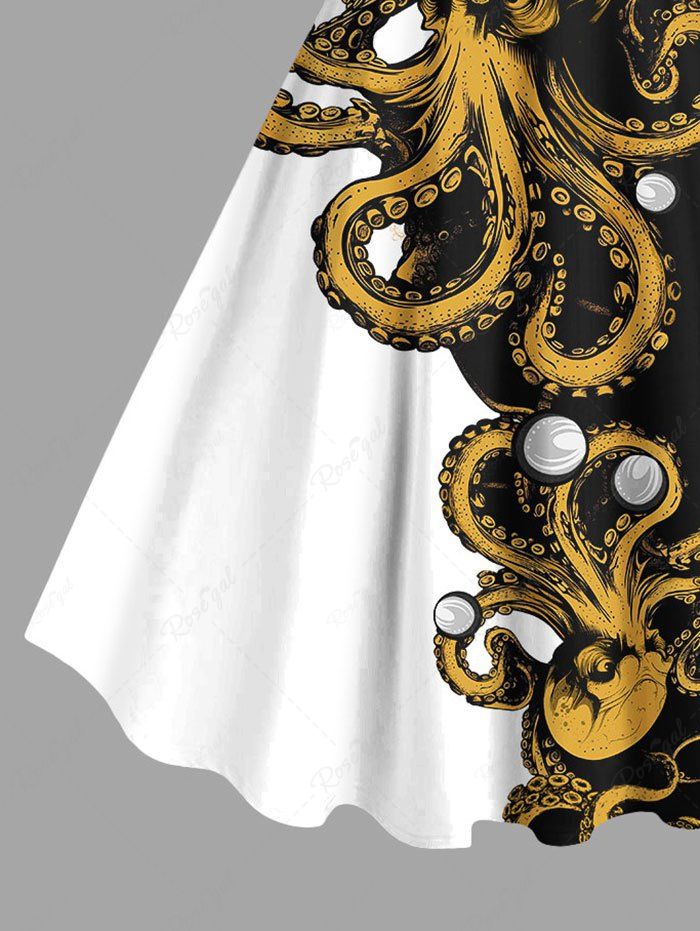 Gothic Plus Size Octopus Bubble Contrast Colorblock Print Hawaii A Line Tank Dress