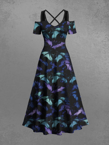 Gothic Plus Size Ombre Bat Print Halloween Costume Crisscross A Line Maxi Dress