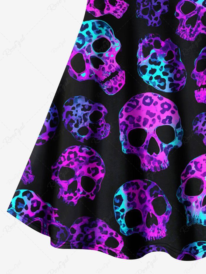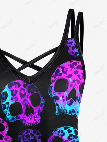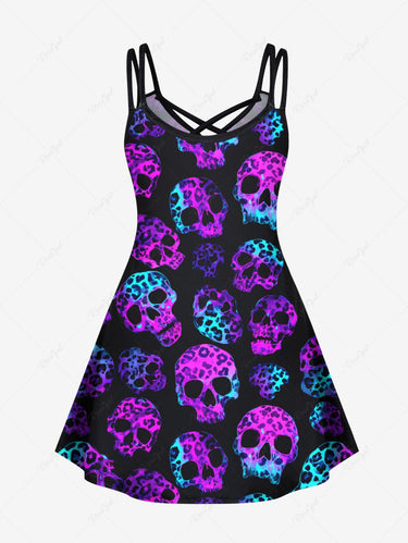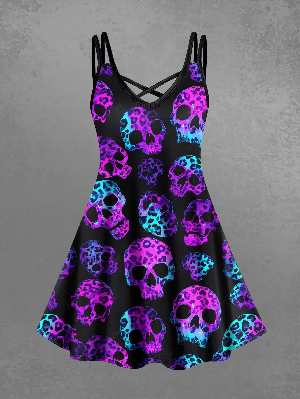 Gothic Plus Size Ombre Leopard Skull Print Crisscross Strappy A Line Cami Dress