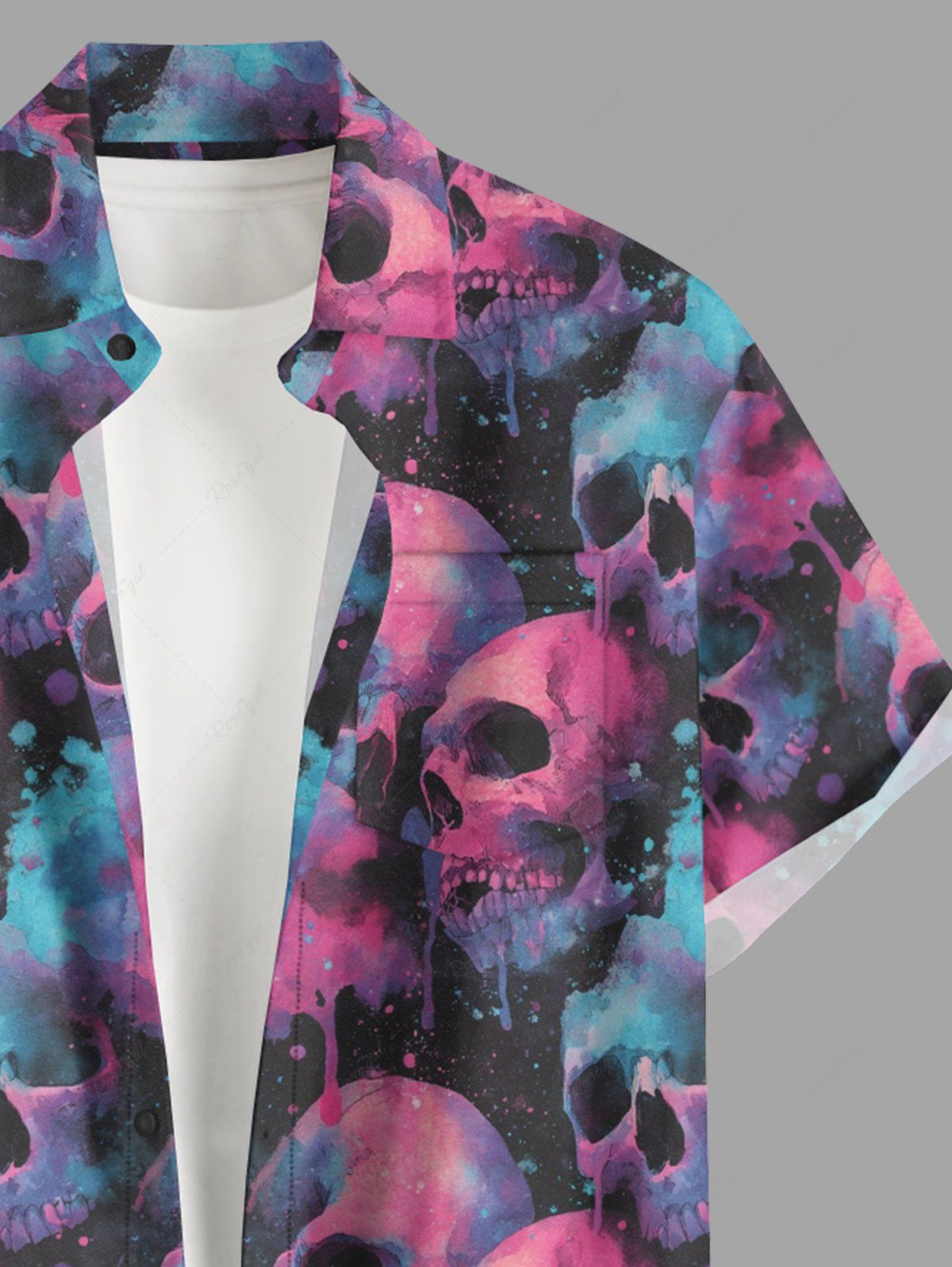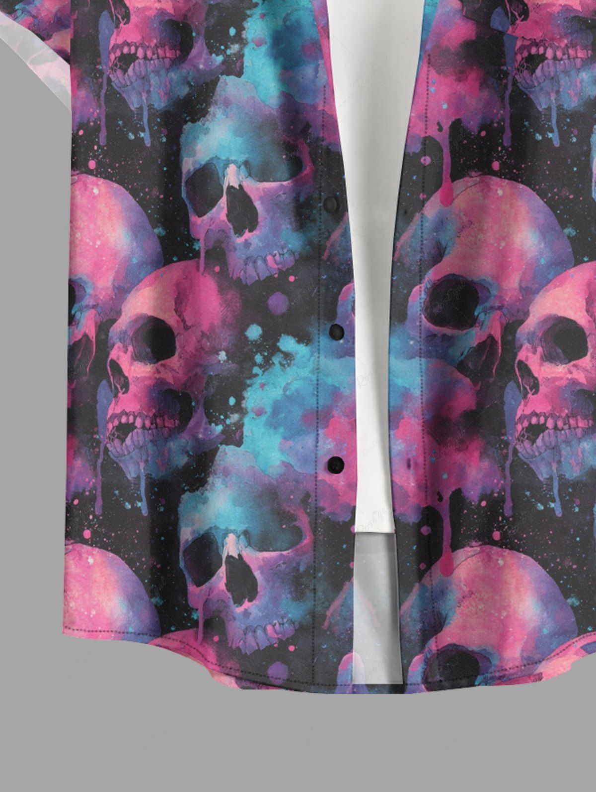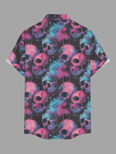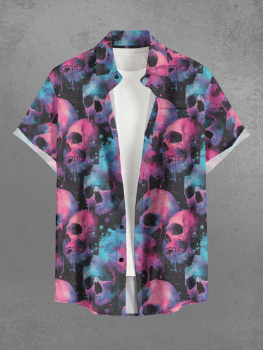 Gothic Plus Size Ombre Skull Print Button Pocket Shirt For Men
