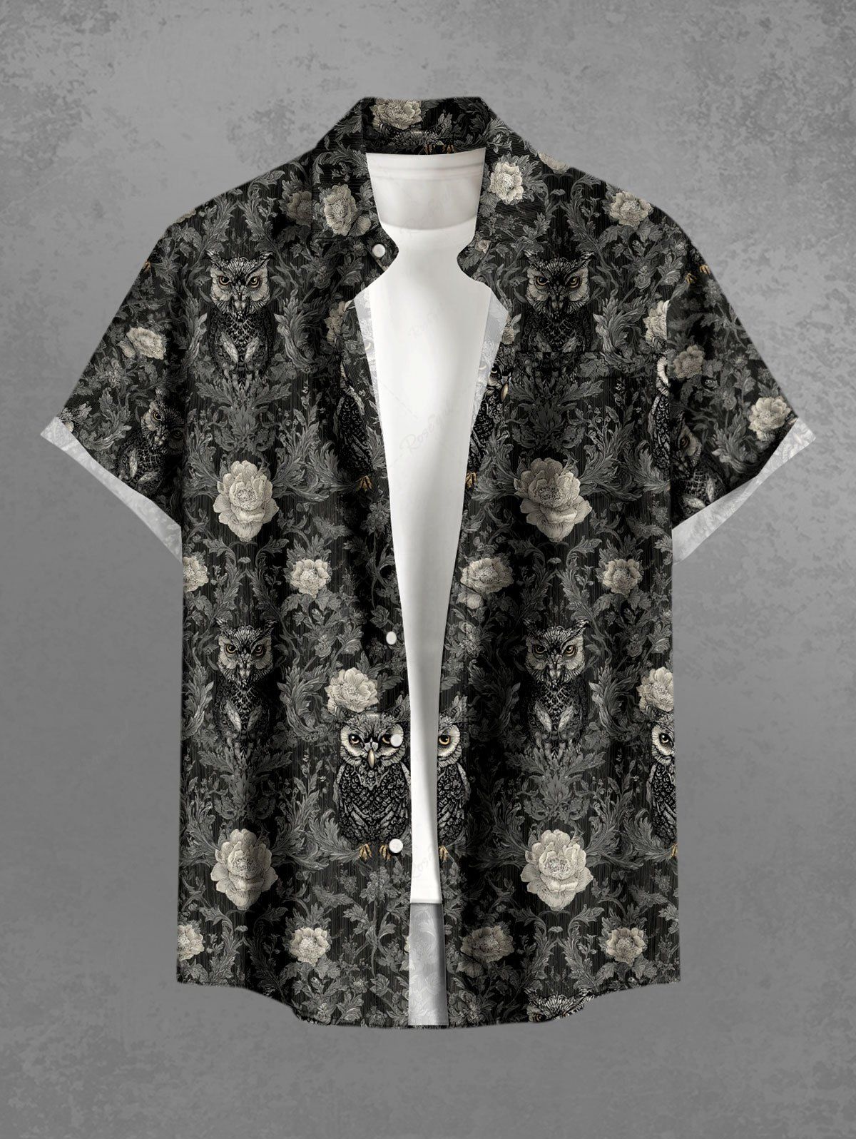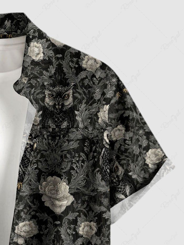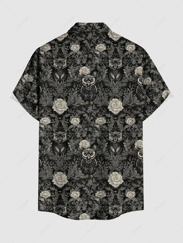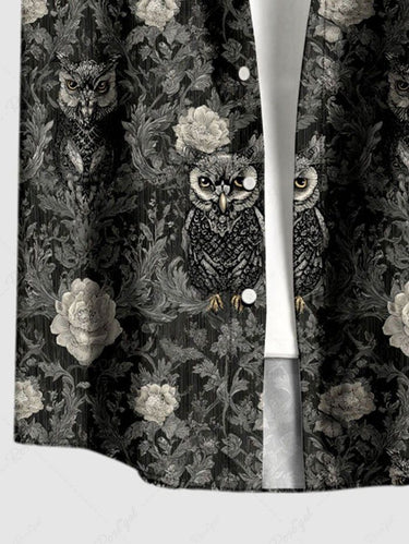 Gothic Plus Size Owl Flower Leaf Print Button Pocket Shirt For Men