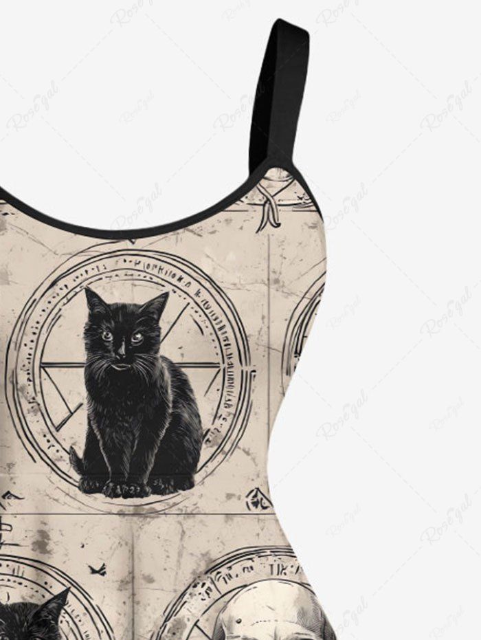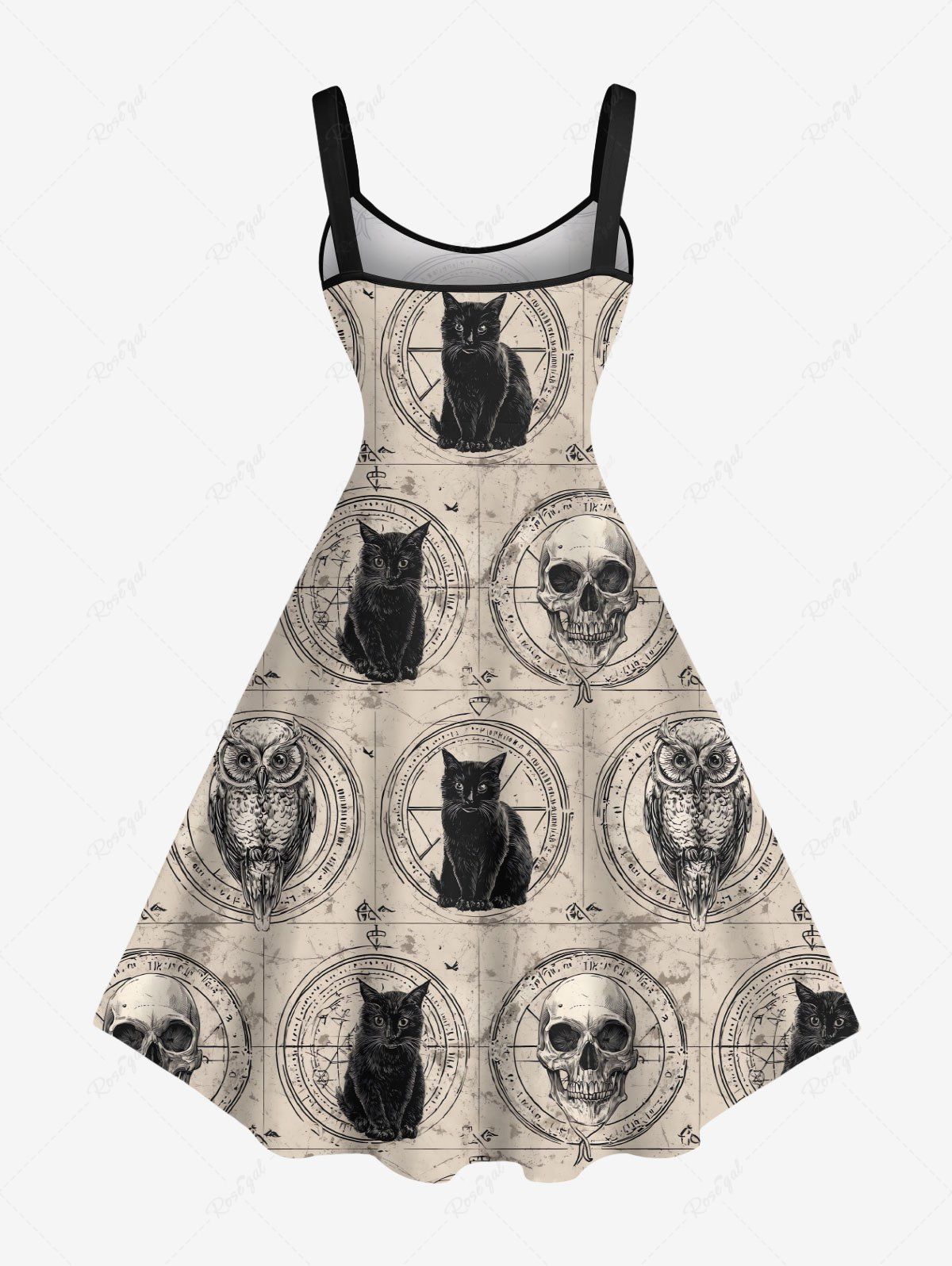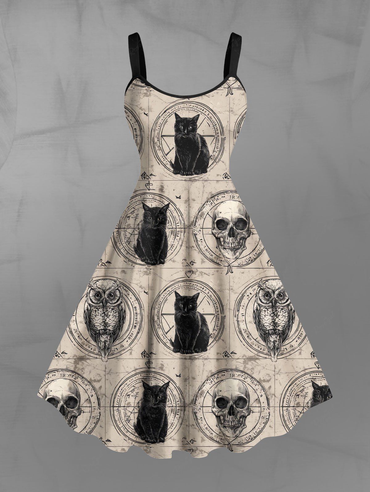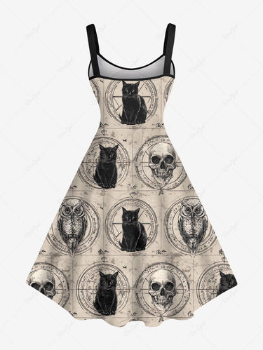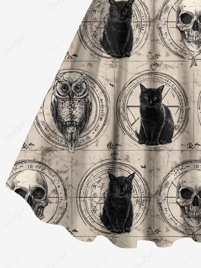 Gothic Plus Size Owl Skull Cat Print A Line Dress