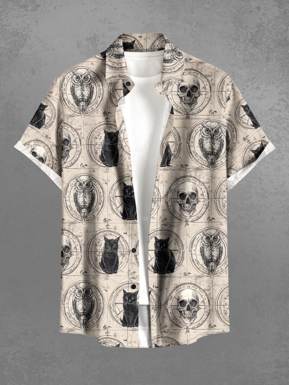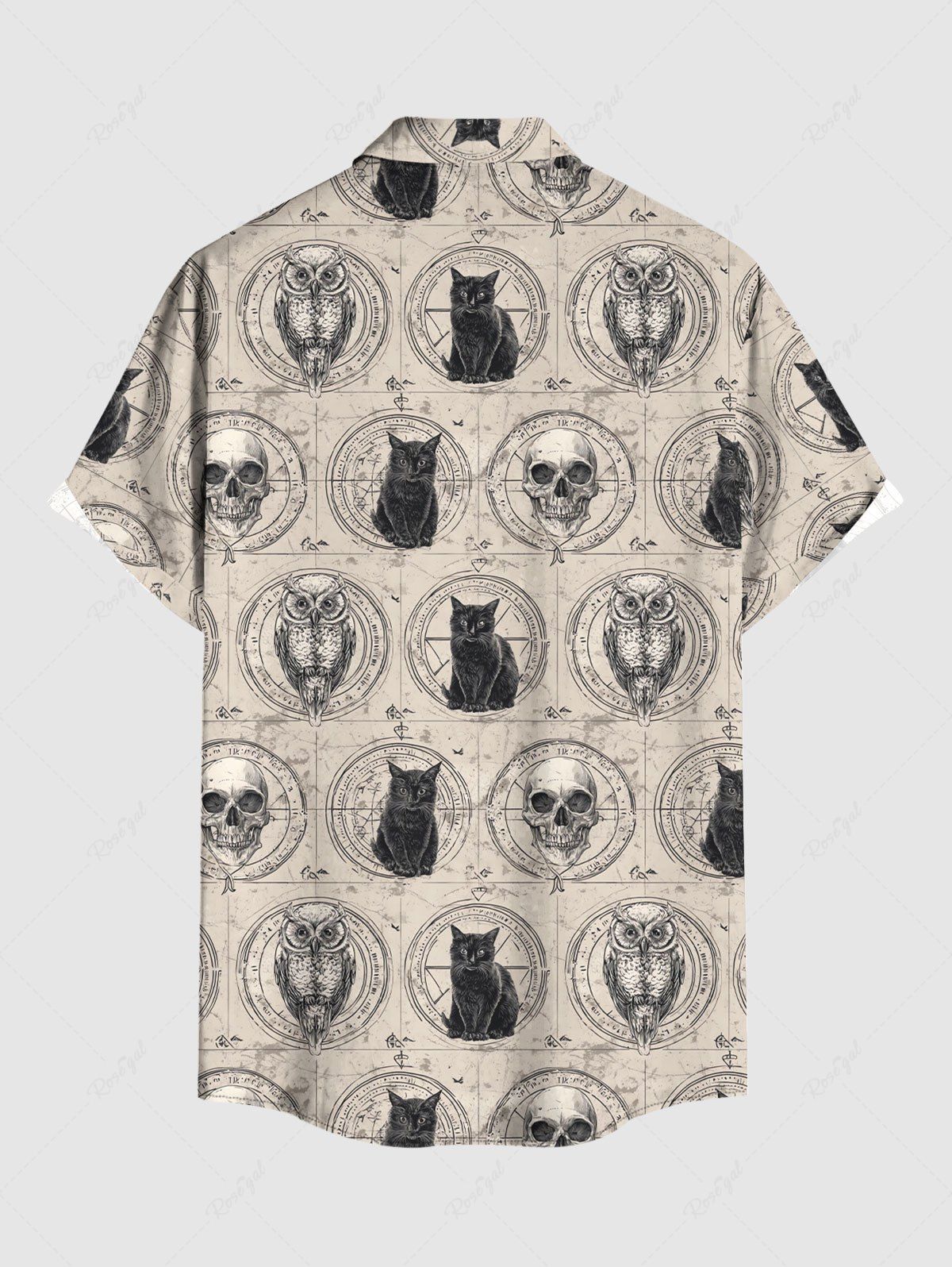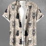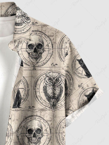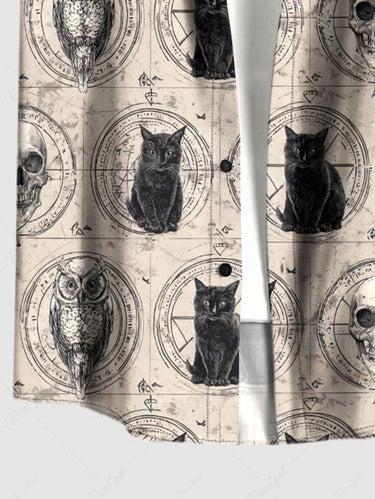 Gothic Plus Size Owl Skull Cat Print Button Pocket Shirt For Men