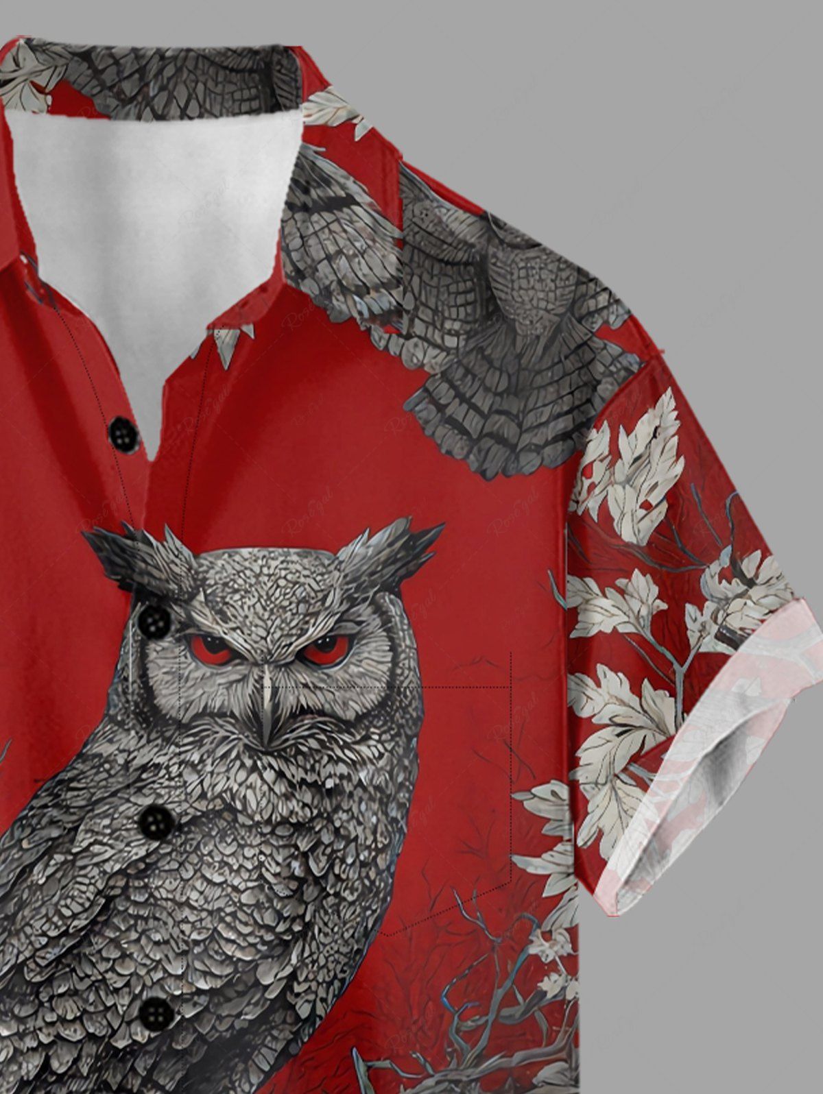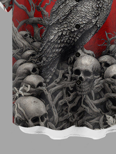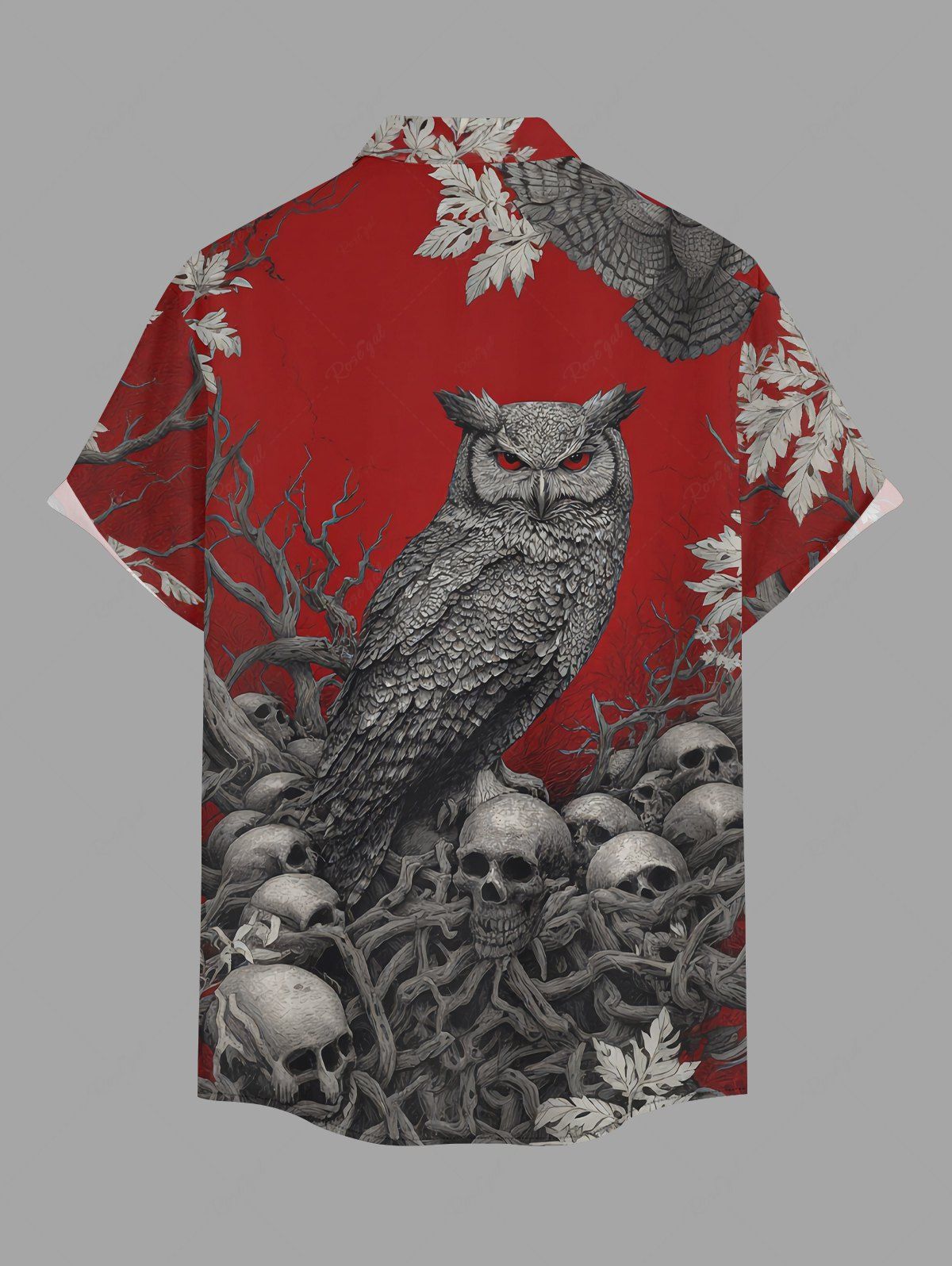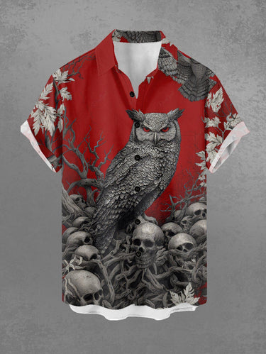 Gothic Plus Size Owl Skull Tree Branch Leaf Print Button Pocket Shirt For Men