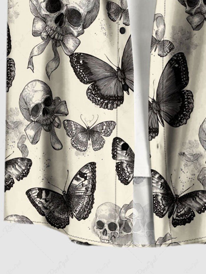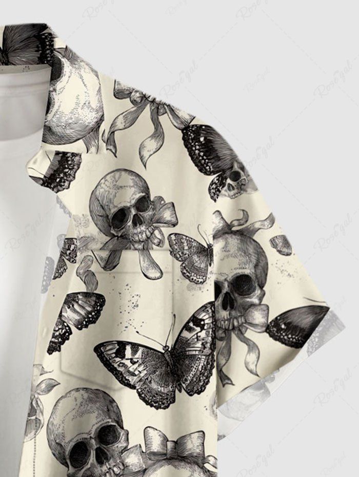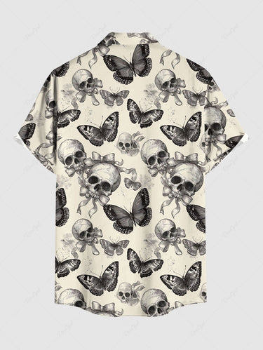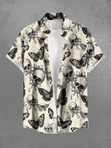 Gothic Plus Size Skull Butterfly Bowknot Print Button Pocket Shirt For Men