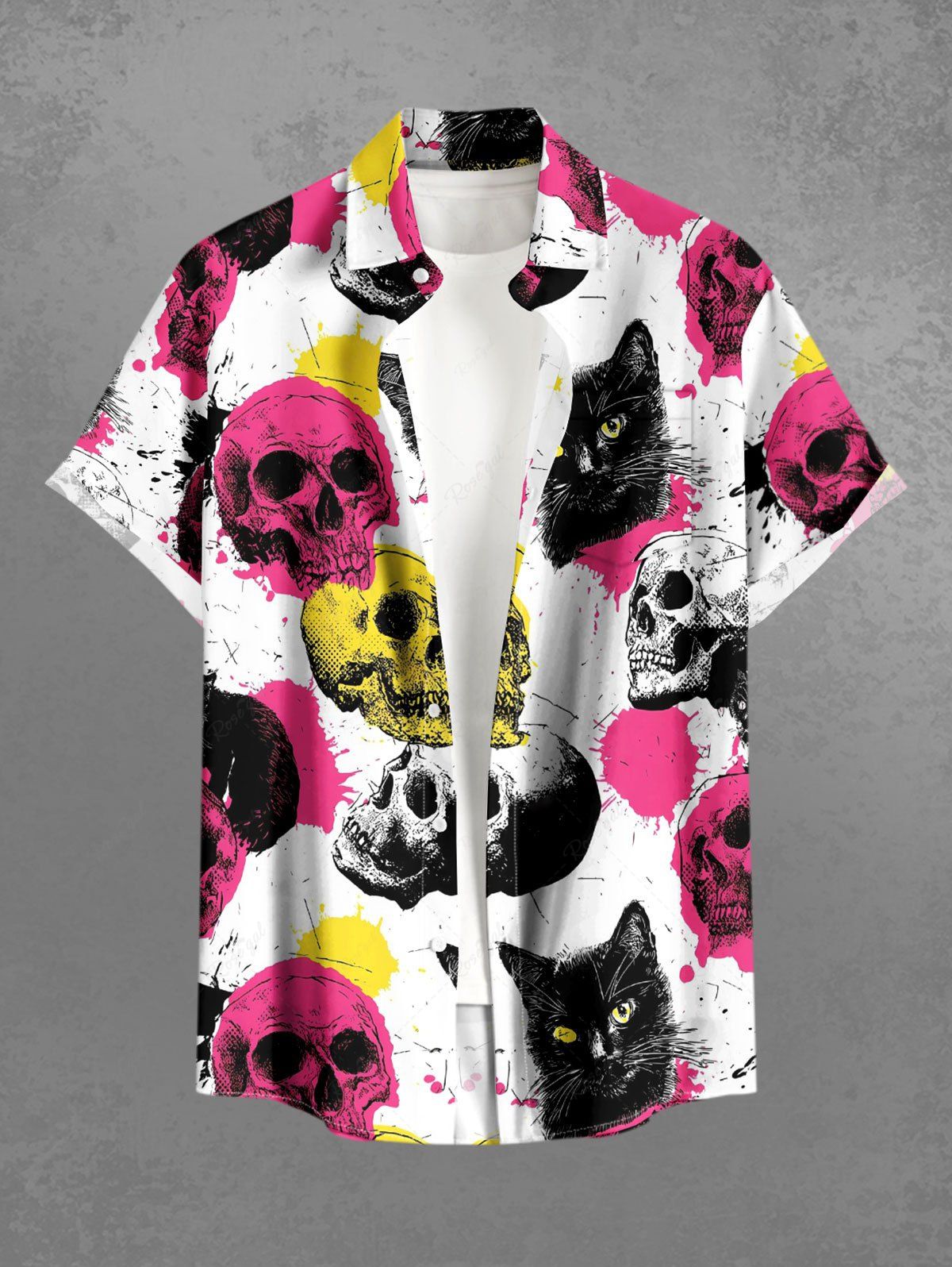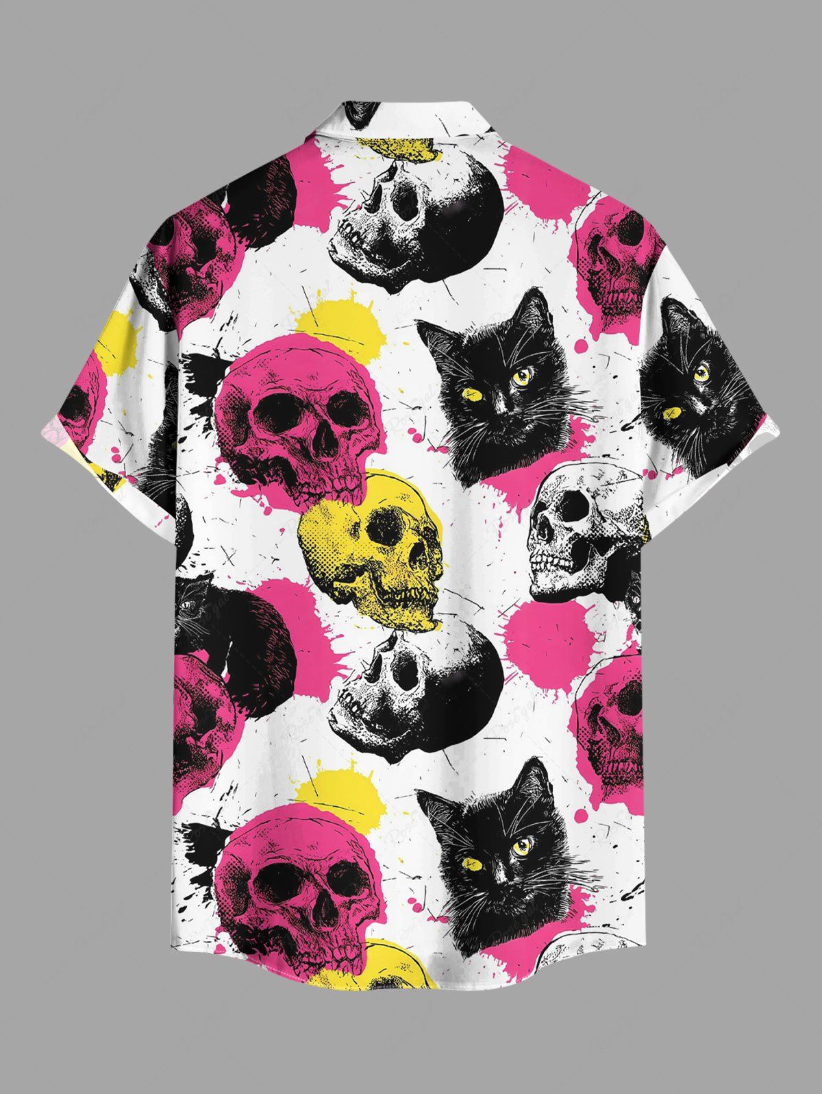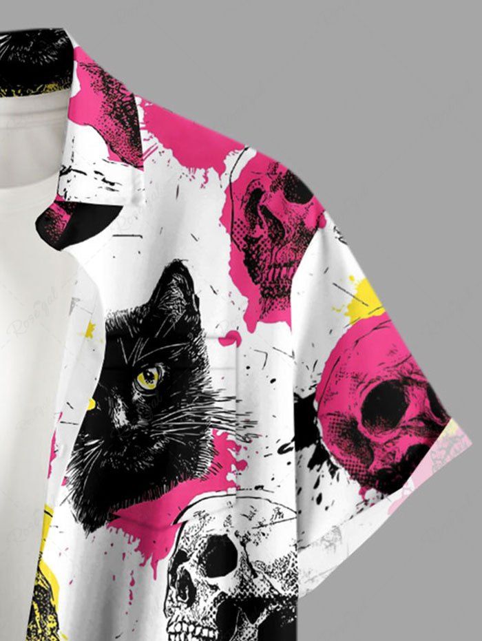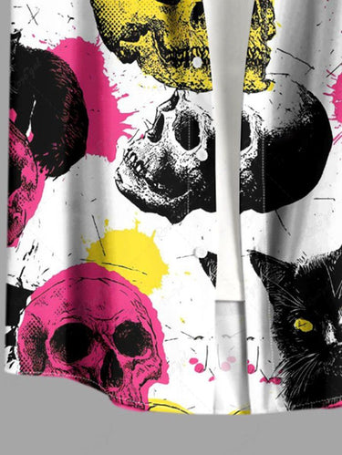 Gothic Plus Size Skull Cat Print Button Pocket Shirt For Men