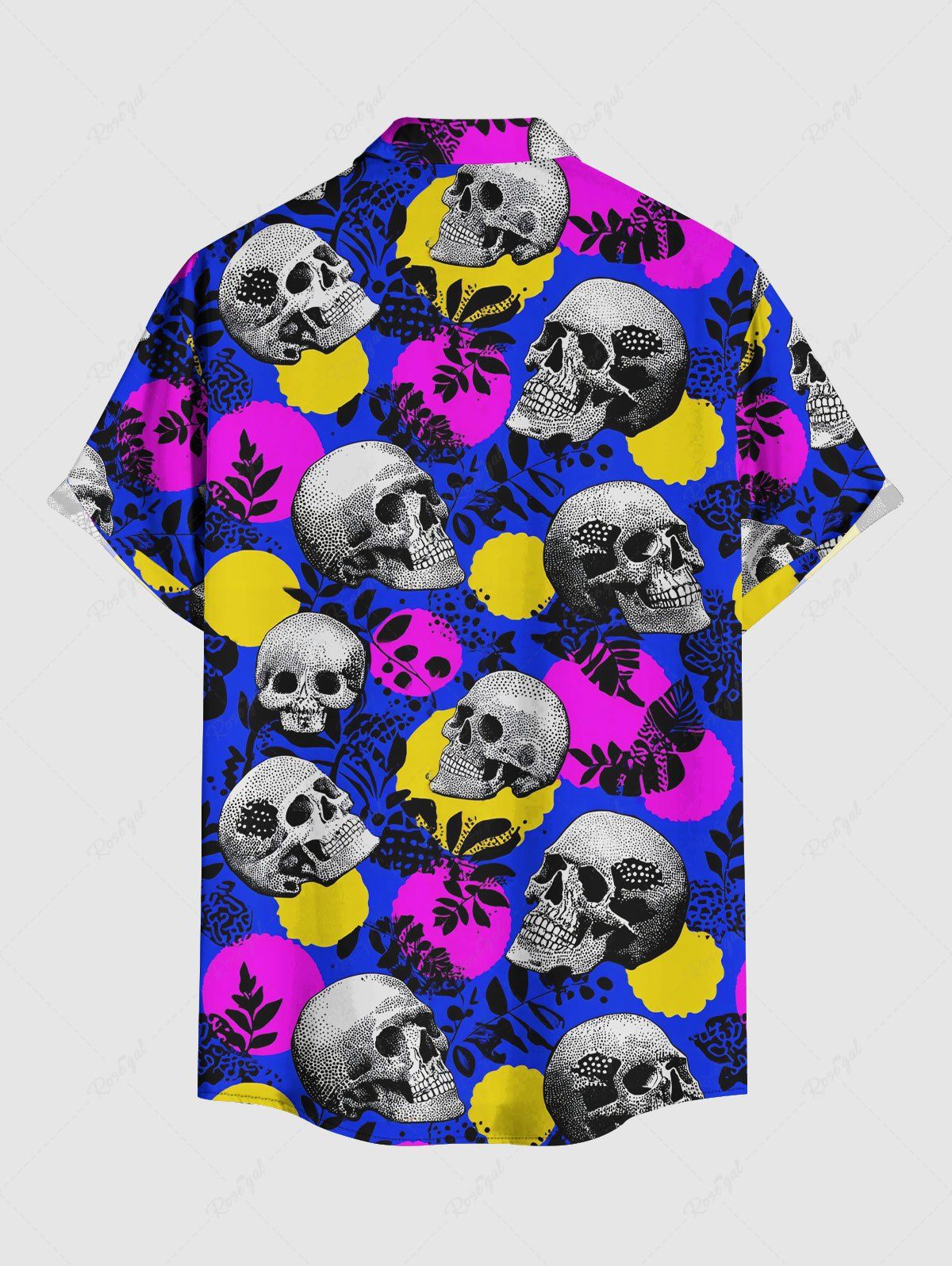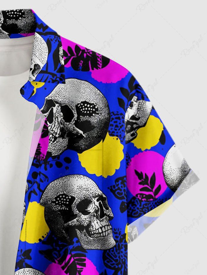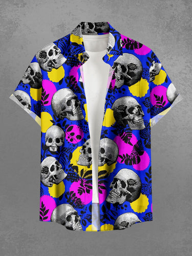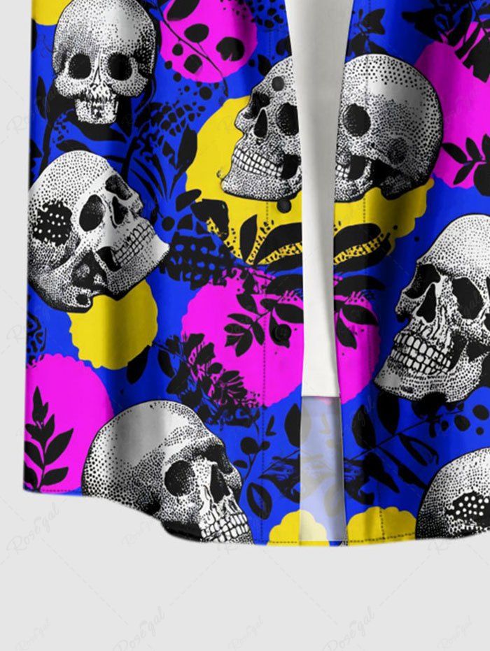 Gothic Plus Size Skull Leaf Branch Print Button Pocket Shirt For Men