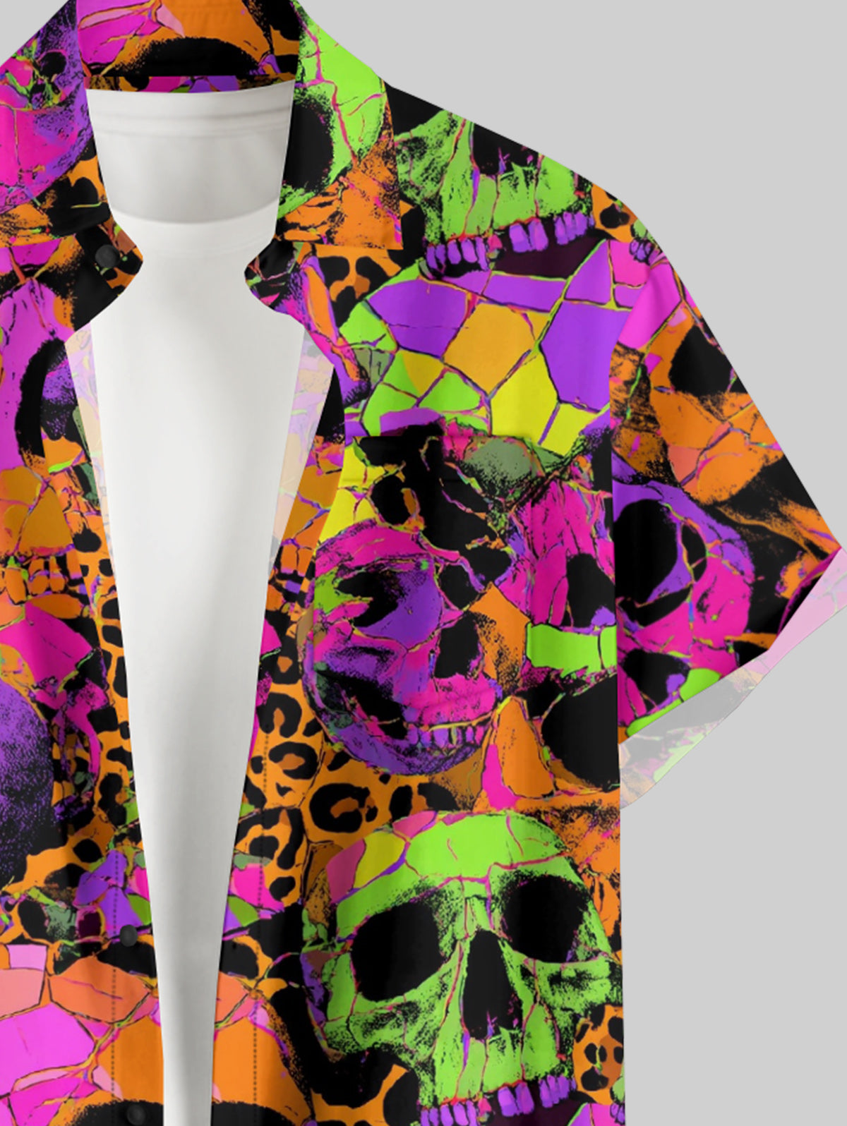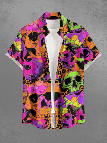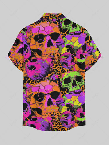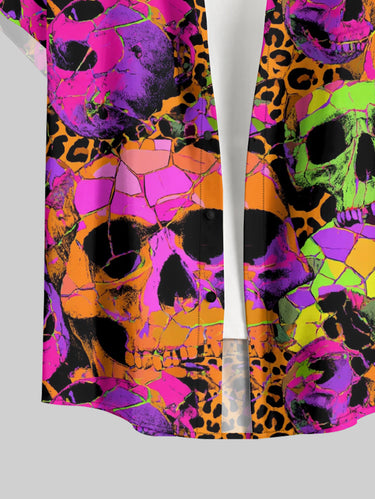 Gothic Plus Size Skull Leopard Print Button Pocket Shirt For Men