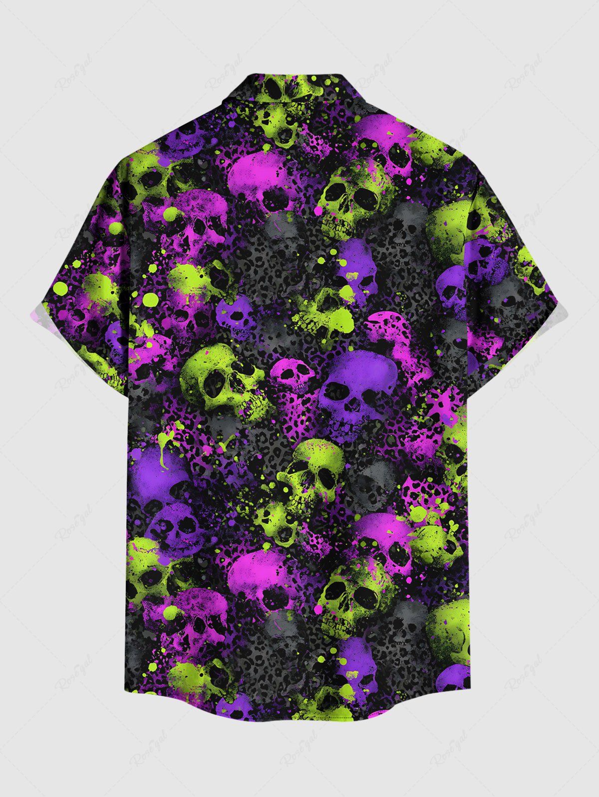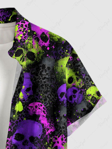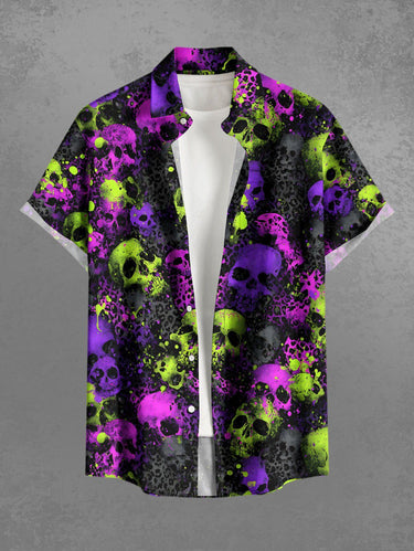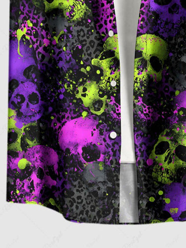 Gothic Plus Size Skull Leopard Print Button Pocket Shirt For Men