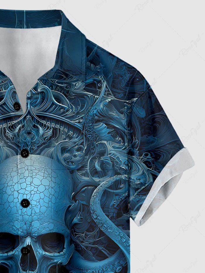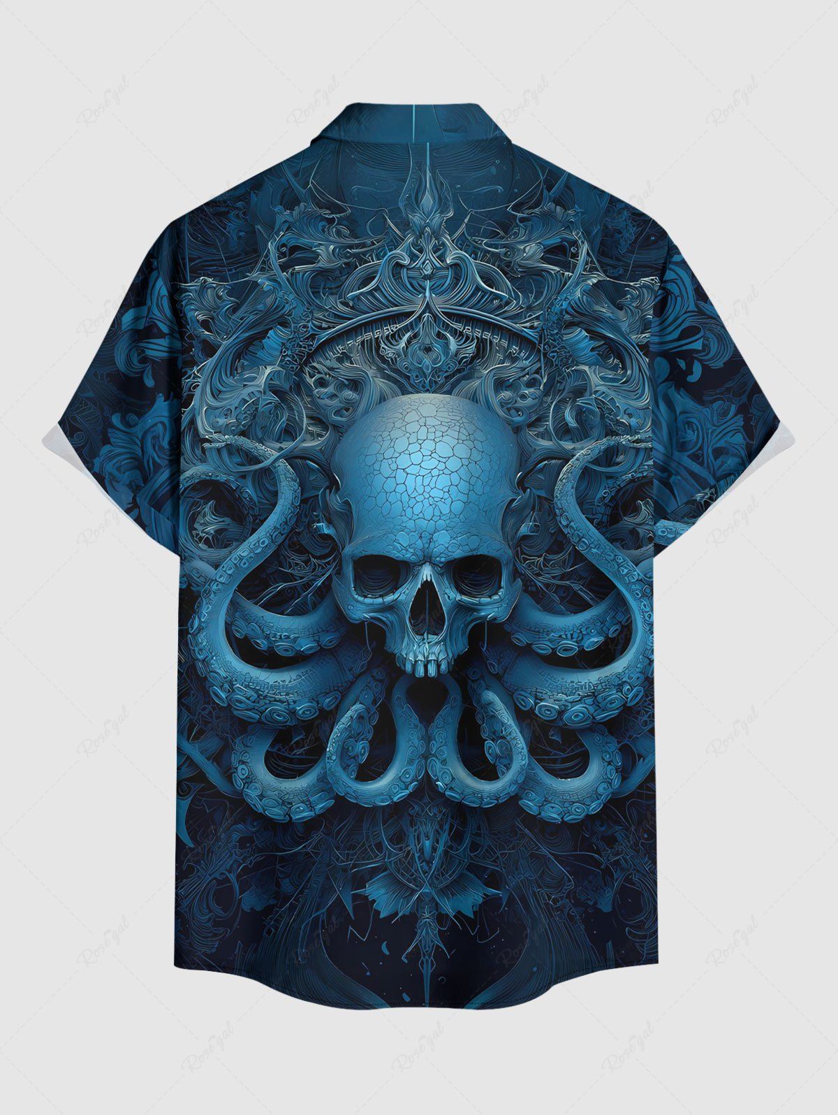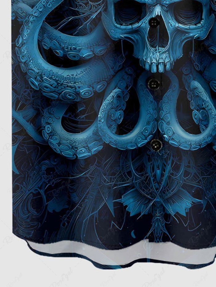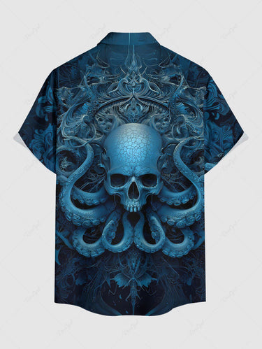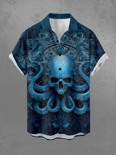 Gothic Plus Size Skull Octopus Print Button Pocket Shirt For Men