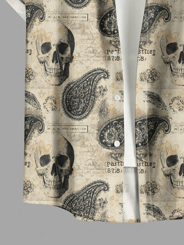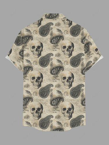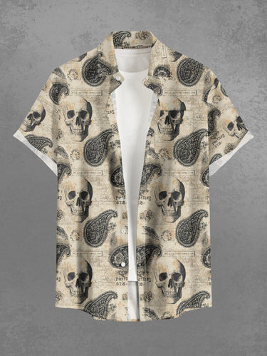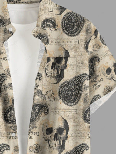 Gothic Plus Size Skull Paisley Print Button Pocket Shirt For Men