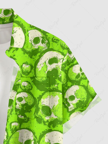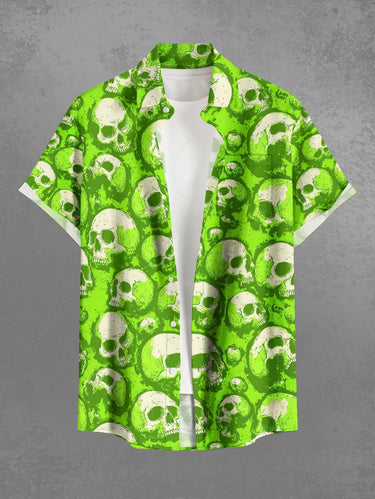 Gothic Plus Size Skull Print Buttons Pocket Shirt For Men