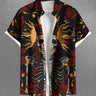 Gothic Plus Size Skull Skeleton Floral Sun Priest Print Button Pocket Shirt For Men
