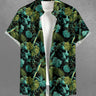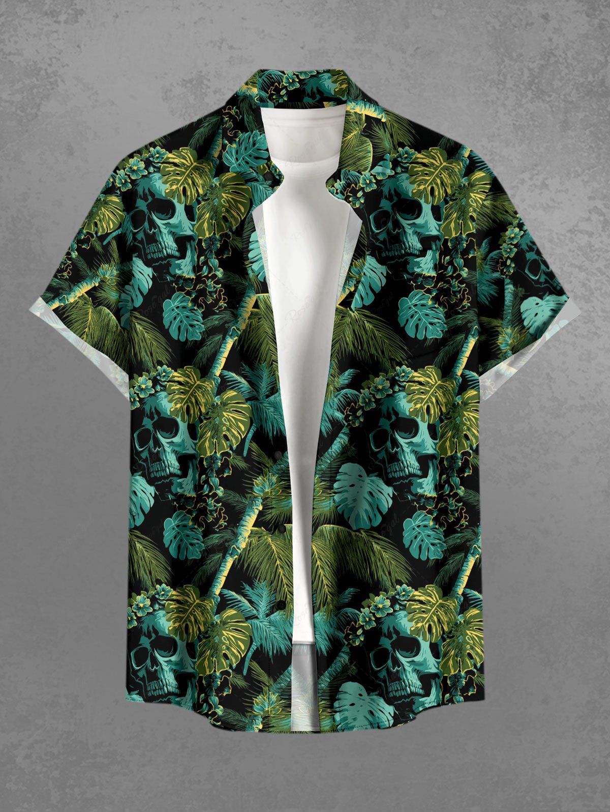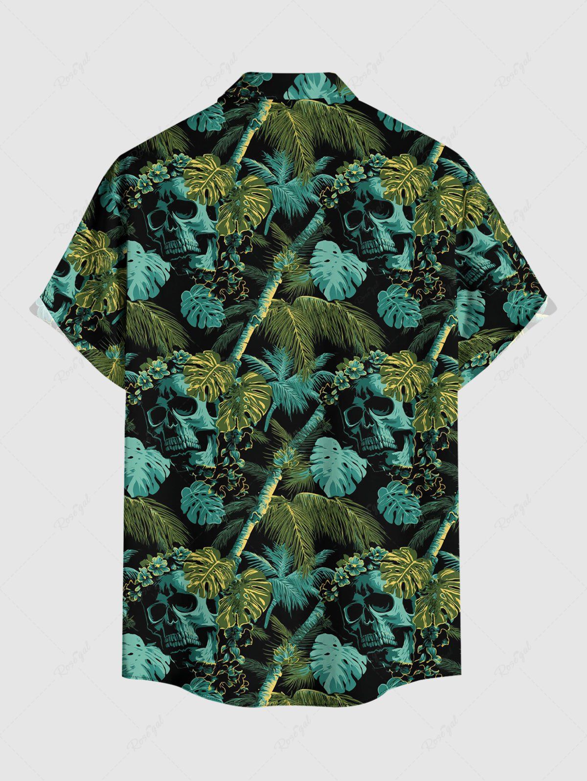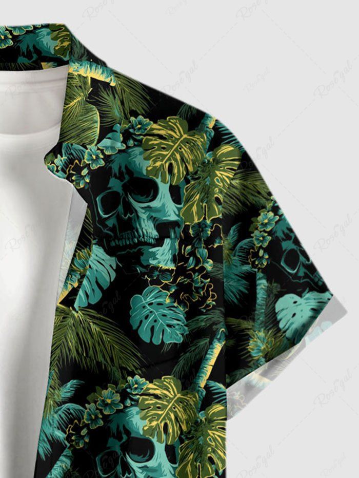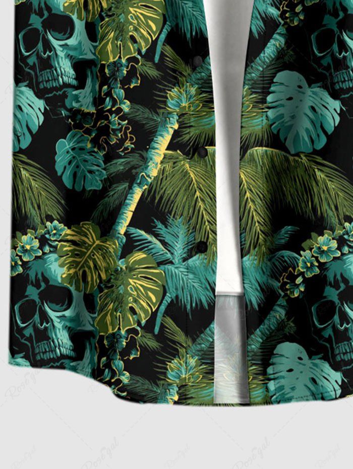 Gothic Plus Size Skull Tropical Leaf Coconut Tree Print Button Pocket Shirt For Men