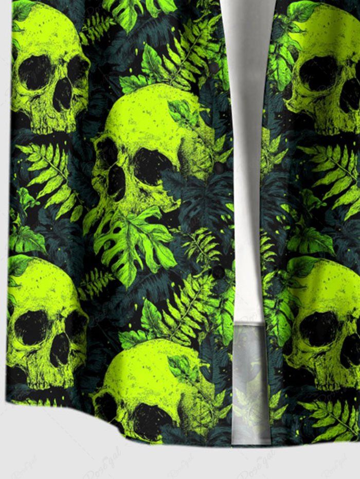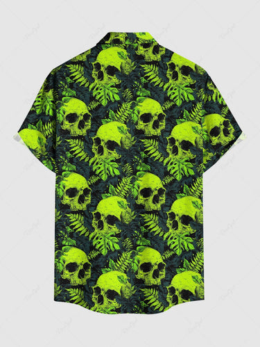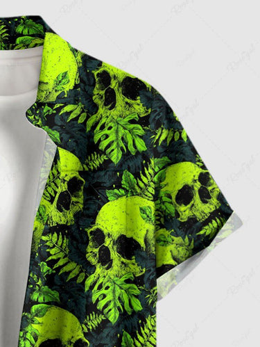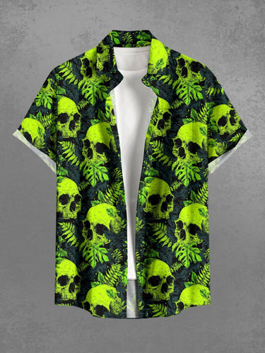 Gothic Plus Size Skull Tropical Leaf Print Button Pocket Shirt For Men