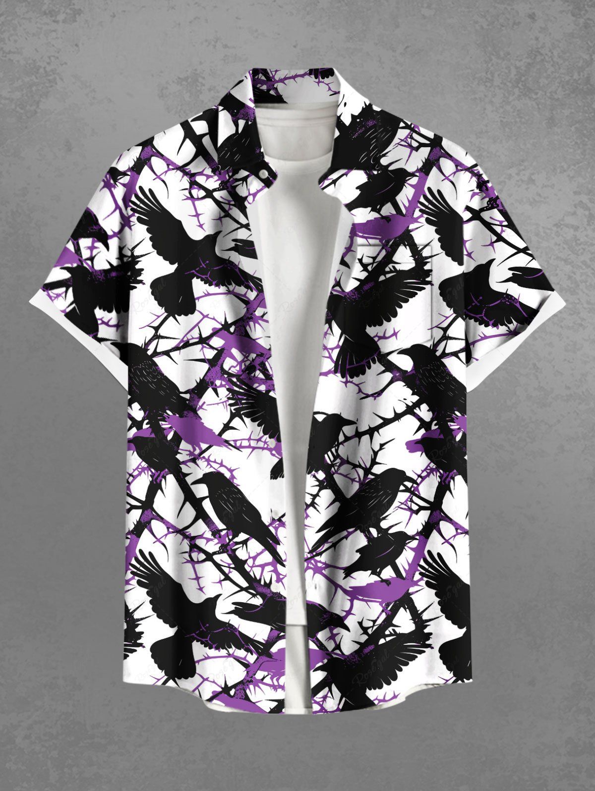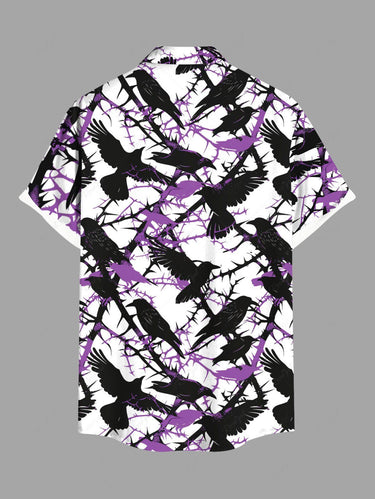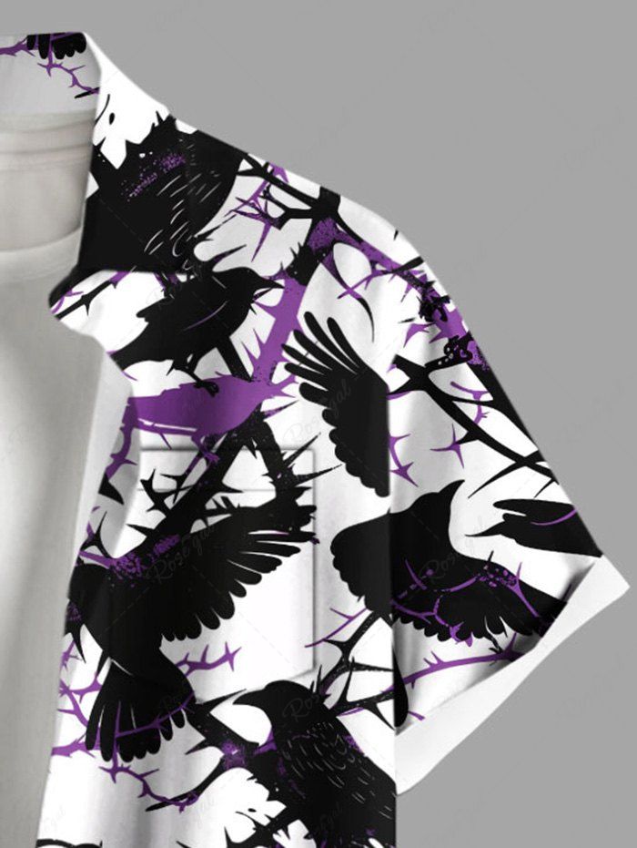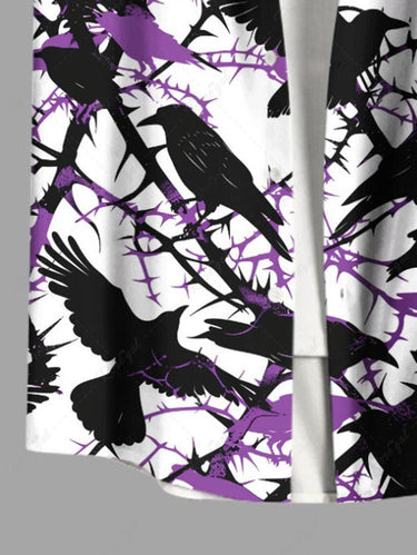 Gothic Plus Size Thorns Branch Crow Print Button Pocket Shirt For Men